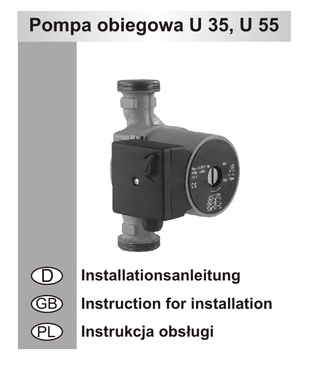 Pompa obiegowa U 35, U 55 D Installationsanleitung GB Instruction for installation PL Instrukcja obs³ugi U 35, U 55 Konformitätserklärung / Deklaracja zgodnoœci. D Wir erklären, dass diese Produkte mit den folgenden EURichtlinien übereinstimmen: GB We declares that these products are In conformity with the following EU- directives: PL Firma WITA Wilhelm Taake GmbH oœwiadcza, ¿e produkty s¹ zgodne z nastêpuj¹cymi normami Unii Europejskiej: 89/392/EEC (EN 292) 89/336/EEC (EN 50 081-1, EN 50 082-2) 73/23/ECC (EN 60 335-1, EN 60 335-2-51) 2 DANE TECHNICZNE U 35 U 55 H m H m 4 5 4 3 3 2 2 1 0 1 0 1 Prêdkoœæ I Prêdkoœæ II Prêdkoœæ III 2 0,17 0,26 0,30 3 0 Qm 3 /h 39 60 69 0 1 Prêdkoœæ I Prêdkoœæ II Prêdkoœæ III Napiêcie zasilania: Przewód zasilaj¹cy: Max temperatura medium: Max temperatura otoczenia: Max ciœnienie: 2 0,17 0,27 0,35 3 Qm 3 /h 39 62 80 1 x 230 V ~ 50 Hz max 3 x 1,5 mm2 110 0C 40 0C 10 bar MONTA¯ POMPY Pompê mo¿na montowaæ przed (zalecane) lub za Ÿród³em ciep³a (piecem). Przy monta¿u nale¿y zwróciæ uwagê na: wymagany kierunek przep³ywu zgodny ze strza³k¹ na korpusie pompy, ³atwy dostêp do pompy celem odpowietrzenia i na zamontowanie osi pompy zawsze w kierunku poziomym. 3 POD£¥CZENIE ELEKTRYCZNE Przewody elektryczne ³¹cznie z uziemieniem nale¿y wprowadziæ do listwy zaciskowej z lekkim zwisem i pod³¹czyæ zgodnie z oznaczeniem. L - przewód fazowy N - przewód zerowy - uziemienie Zewnêtrzne elektryczne zabezpieczenia nie s¹ wymagane. Silnik pompy mo¿na ustawiæ dowolnie co 900 w stosunku do korpusu pompy, nale¿y jednak zwróciæ uwagê, aby wyprowadzenie przewodu elektrycznego nie by³o skierowane do góry, a puszka zaciskowa nie znajdowa³a siê u do³u silnika (patrz rysunki 2, A1, A2, A3, A4). Pod³¹czenie w puszce zaciskowej oraz styki pomiêdzy puszk¹ a uzwojeniem silnika, nale¿y bezwzglêdnie chroniæ przed wilgoci¹. Niedopuszczalne jest montowanie pomp w pomieszczeniach o du¿ej wilgotnoœci. ROZRUCH Przed uruchomieniem pompy ca³a instalacja centralnego ogrzewania wype³niona musi byæ wod¹ a pompa odpowietrzona. Nie nale¿y dopuœciæ do pracy pompy na „sucho”. W celu odpowietrzenia i sprawdzenia pracy pompy nale¿y prze³¹czyæ pompê na obroty maksymalne (prêdkoœæ 3), odkrêciæ korek znajduj¹cy siê na tylnej œciance silnika i w³¹czyæ pompê (patrz rysunek 6,7,8). 4 OBS£UGA POMPY Pompa nie wymaga ¿adnej obs³ugi w czasie pracy. ¯¹dane charakterystyki przep³ywu otrzymuje siê poprzez zmianê prêdkoœci obrotowej silnika prze³¹cznikiem umieszczonym na skrzynce elektrycznej. Zmiany mo¿na dokonywaæ w czasie pracy pompy. Po d³u¿szym postoju wa³ek silnika mo¿e byæ zablokowany. Aby odblokowaæ wa³ek patrz tabela. Usterka Przyczyna Usuniêcie usterki Pompa nie dzia³a Brak zasilania Sprawdziæ bezpieczniki lub luŸne dociski przewodów elektrycznych Uszkodzenie kondensatora Wymieniæ kondensator Pompa zablokowana poprzez osady na ³o¿yskach Na krótki czas prze³¹czyæ na max liczbê obrotów lub odblokowaæ wirnik: do naciêcia wprowadziæ wkrêtak i przekrêciæ rêcznie Pompa zabrudzona Zdemontowaæ silnik i wyczyœciæ pompê Za wysoka prêdkoœæ obrotowa Prze³¹czyæ na ni¿sz¹ liczbê obrotów Pompa jest zapowietrzona Odpowietrzyæ pompê lub instalacjê Ciœnienie dop³ywu jest za ma³e Zwiêkszyæ ciœnienie dop³ywu lub sprawdziæ objêtoœæ powietrza w naczyniu przeponowym (je¿eli wystêpuje) Instalacja jest za g³oœna Pompa jest za g³oœna 5 6 7
