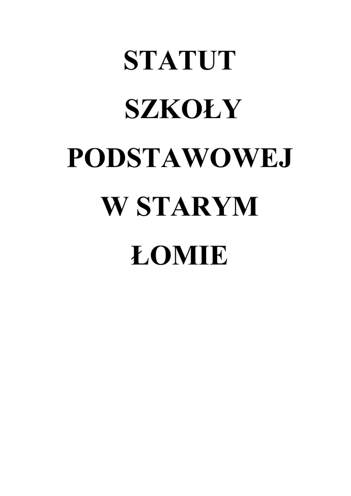 STATUT SZKOŁY PODSTAWOWEJ W STARYM ŁOMIE STATUT SZKOŁY PODSTAWOWEJ W STARYM ŁOMIE UCHWAŁA NR 16 /10 Z DNIA 2 GRUDNIA 2010 ROKU ROZDZIAŁ I NAZWA I TYP SZKOŁY §1 Szkoła nosi nazwę Szkoła Podstawowa w Starym Łomie, Stary Łom 42, 59-225 Chojnów, tel.076 8177157. §2 Szkoła jest publiczną, sześcioklasową szkołą podstawową, która: 1. Zapewnia bezpłatne nauczanie w zakresie ramowych planów nauczania. 2. Przeprowadza rekrutację uczniów w oparciu o zasadę powszechnej dostępności. 3. Zatrudnia nauczycieli posiadających kwalifikacje określone w odrębnych przepisach. 4. Realizuje podstawy programowe przedmiotów obowiązkowych oraz ramowy plan nauczania. 5. Realizuje ustalone przez Ministerstwo Edukacji Narodowej i Sportu zasady oceniania, klasyfikowania i promowania uczniów. 6. Umożliwia uzyskanie świadectwa ukończenia danej klasy lub ukończenia szkoły. §3 INNE INFORMACJE O SZKOLE 1. Organem prowadzącym Szkołę Podstawową w Starym Łomie jest Gmina Wiejska Chojnów. 2. Organem pełniącym nadzór pedagogiczny jest Kurator Oświaty Województwa Dolnośląskiego. 1) Czas trwania cyklu kształcenia – zgodnie z przepisami w sprawie ramowych planów nauczania – 6 lat. Edukacja szkolna przebiega w 2 etapach: I etap – kształcenie zintegrowane (klasy I- III) II etap edukacji – klasy IV - VI 2) Czas rozpoczynania i kończenia zajęć dydaktycznych oraz przerw i ferii określa Minister Edukacji Narodowej i Sportu w drodze rozporządzenia w sprawie organizacji roku szkolnego. 3) W szkole prowadzony jest oddział przedszkolny, który obejmuje dzieci w wieku 6 lat. Oddział realizuje program wychowania przedszkolnego dla 6 – latków określony przez Ministerstwo Edukacji Narodowej. ROZDZIAŁ II CELE I ZADANIA SZKOŁY §1 Szkoła realizuje cele i zadania wynikające z przepisów prawa oraz uwzględniające program wychowawczy szkoły i program profilaktyki dostosowany do potrzeb rozwojowych uczniów oraz potrzeb środowiska, o których mowa w odrębnych przepisach, a w szczególności: 1 STATUT SZKOŁY PODSTAWOWEJ W STARYM ŁOMIE UCHWAŁA NR 16 /10 Z DNIA 2 GRUDNIA 2010 ROKU 1. Umożliwia uczniom zdobycie wiedzy i umiejętności niezbędnych do uzyskania świadectwa ukończenia szkoły poprzez: atrakcyjny i nowatorski proces nauczania udział w konkursach przedmiotowych uczestnictwo w życiu kulturalnym 2. Umożliwia uczniom wszechstronny rozwój umysłowy, emocjonalny i fizyczny w zgodzie z ich potrzebami i możliwościami psychofizycznymi. 3. Zapewnia uczniom opiekę pedagogiczną i zdrowotną oraz bezpieczeństwo w szkole i w czasie zajęć organizowanych przez szkołę. 4. Zapewnia uczniom indywidualizację podejścia pedagogicznego i opiekuńczego w ramach możliwości szkoły. 5. Zapewnia uczniom warunki poszanowania godności osobistej oraz wolności światopoglądowej i wyznaniowej. 6. Umożliwia uczniom rozwój ich talentów i zainteresowań poznawczych, społecznych, artystycznych i sportowych. 7. Umożliwia absolwentom dalsze kształcenie na poziomie gimnazjalnym poprzez poradnictwo psychologiczno – pedagogiczne oraz rozwijanie zainteresowań na zajęciach pozalekcyjnych. 8. Kształtuje środowisko wychowawcze sprzyjające realizowaniu celów i zasad określonych w ustawie, stosownie do warunków szkoły i wieku ucznia poprzez: zapewnienie odpowiedniej bazy dla uczniów systematyczne diagnozowanie i monitorowanie zachowań uczniów realizowanie programu wychowawczego szkoły podstawowej, który uchwala rada pedagogiczna po zasięgnięciu opinii rady rodziców i samorządu uczniowskiego.. 9. Rozwija ucznia patriotycznie poprzez organizacje apeli i uroczystości z okazji rocznic państwowych i szkolnych. 10. Określa szczegółowe szkole zasady oceniania opracowanego zgodnie z odrębnymi przepisami w sprawie zasad oceniania, klasyfikowania i promowania uczniów, także określa zasady przeprowadzania sprawdzianów i egzaminów. § 2. Wymienione zadania w § 1 Szkoła realizuje poprzez: 1. Respektowanie i stosowanie współczesnych zasad nauk pedagogicznych. 2. Ciągłe doposażenie (w miarę możliwości) szkoły w nowoczesne środki dydaktyczne i ich optymalne wykorzystanie. 3. Organizację różnorodnych form zajęć artystycznych, sportowych i rekreacyjnych. 4. Promowanie wychowania zdrowotnego, ekologicznego, komunikacyjnego, prorodzinnego. 5. W miarę potrzeby nauczania integracyjnego. 6. Uznanie rodziny jako głównego ogniwa wychowania, ścisłą współpracę szkoły z rodzicami, pomoc rodzicom nie radzącym sobie z wychowaniem dzieci. 7. Dostosowanie treści, metod, organizację nauczania do możliwości psychofizycznych uczniów, a także umożliwienie korzystania z opieki psychologiczno – pedagogicznej. 2 STATUT SZKOŁY PODSTAWOWEJ W STARYM ŁOMIE UCHWAŁA NR 16 /10 Z DNIA 2 GRUDNIA 2010 ROKU 8. Otaczanie opieką uczniów szczególnie uzdolnionych poprzez umożliwienie realizowania indywidualnych programów nauczania lub toku nauczania oraz ukończenia szkoły w skróconym czasie. 9. Organizowanie nauki religii w szkole na życzenie rodziców, zgodnie z rozporządzeniem MEN. 10. Przygotowanie uczniów do wypełniania obowiązków rodzinnych i obywatelskich w oparciu o zasady solidarności, demokracji, tolerancji, sprawiedliwości i wolności. ROZDZIAŁ III SZCZEGÓŁOWE ZASADY WEWNĄTRZSZKOLNEGO OCENIANIA UCZNIÓW W SZKOLE PODSTAWOWEJ W STARYM ŁOMIE Wewnątrzszkolny System Oceniania (WSO) obejmuje całościowo i systemowo ocenianie wewnętrzne szkoły. Podlegają mu wszyscy uczniowie. Jest wyznacznikiem przedmiotowych systemów oceniania oraz standardów oceniania zachowania uczniów. Zawiera szczegółowerozwiązania specyficzne dla Szkoły Podstawowej w Starym Łomie. Wewnątrzszkolny System Oceniania został uzgodniony z Radą Rodziców, Samorządem Uczniowski oraz Radą Pedagogiczną, która zatwierdziła go, z możliwością ewaluacji i zmian. §1 Postanowienia ogólne 1. Rok szkolny w Szkole Podstawowej w Starym Łomie dzieli si