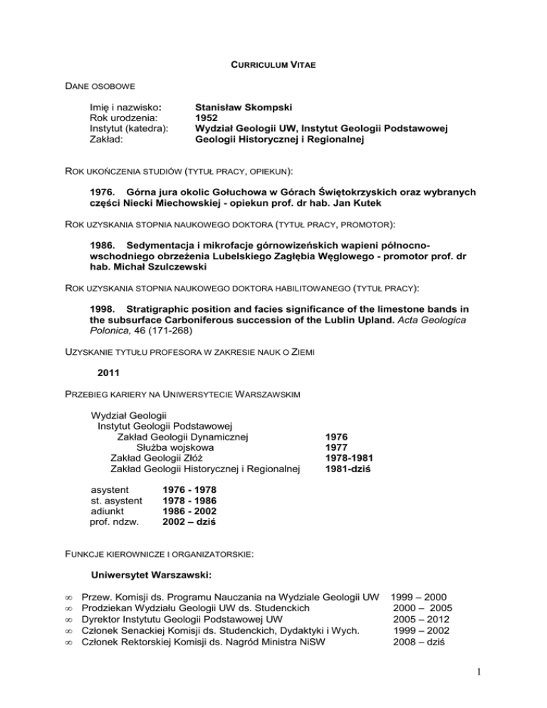 Curriculum Vitae - Wydział Geologii UW