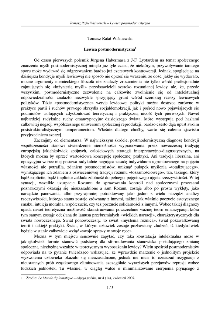 Tomasz Rafał Wiśniewski – Lewica postmodernistyczna