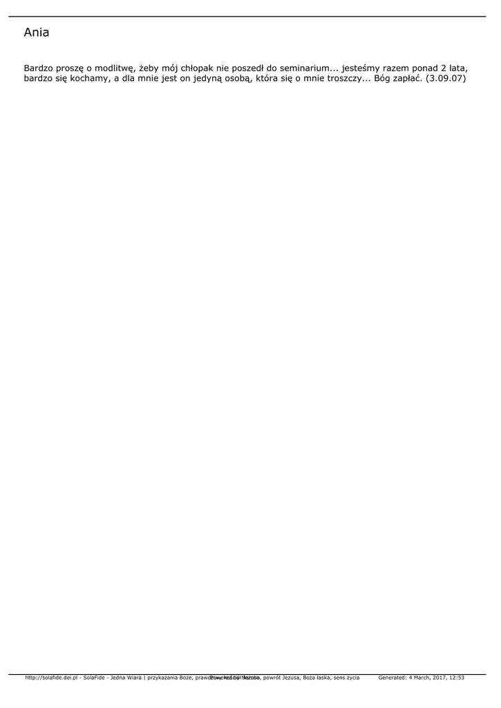 Ania Bardzo proszę o modlitwę, żeby mój chłopak nie poszedł do seminarium... jesteśmy razem ponad 2 lata, bardzo się kochamy, a dla mnie jest on jedyną osobą, która się o mnie troszczy... Bóg zapłać. (3.09.07) http://solafide.dei.pl - SolaFide - Jedna Wiara | przykazania Boże, prawdziwy Powered kościół by Mambo Jezusa, powrót Jezusa, Boża łaska, sens życia Generated: 4 March, 2017, 12:53