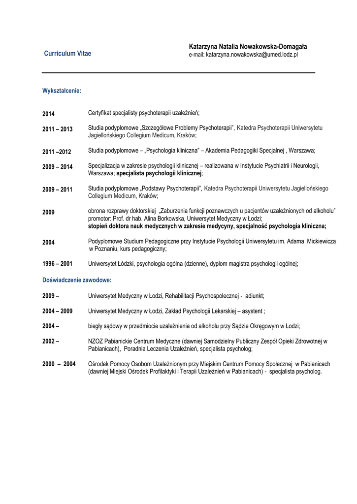 Curriculum Vitae Katarzyna Natalia Nowakowska