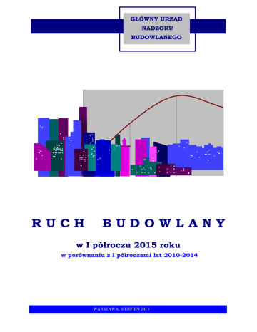 GŁÓWNY URZĄD NADZORU BUDOWLANEGO RUCH BUDOWLANY w I półroczu 2015 roku w porównaniu z I półroczami lat 2010-2014 WWa WARSZAWA, SIERPIEŃ 2015 2 I. Ruch budowlany w I półroczu 2015 roku 1. Wstęp Badania ruchu budowlanego są prowadzone w Głównym Urzędzie Nadzoru Budowlanego od 1995 roku. Podstawą tych działań jest ustawa z dnia 29 czerwca 1995 r. o statystyce publicznej (tekst jednolity: Dz. U. z 2012 r. poz. 591, z późn. zm.), która określa zasady i sposób prowadzenia badań, gromadzenia oraz opracowywania zebranych danych, a takŜe udostępniania i rozpowszechniania wyników, jako oficjalnych danych statystycznych. Analizy dotyczące obiektów budowlanych oddanych do uŜytkowania oraz rozbiórek realizowane są w ramach programu badań statystyki publicznej, natomiast analizy wydanych pozwoleń na budowę i liczby nimi objętych obiektów – prowadzone są jako badania własne, pomocne w realizacji zadań statutowych Głównego Inspektora Nadzoru Budowlanego. W 2006 r. rozszerzono badania o zalegalizowane obiekty budowlane, a w 2009 r. o informacje na temat liczby decyzji – zezwoleń na realizację inwestycji drogowej wydanych na podstawie ustawy z dnia 10 kwietnia 2003 r. o szczególnych zasadach przygotowania i realizacji inwestycji w zakresie dróg publicznych (Dz. U. z 2013 r. poz. 687, z późn. zm.) i obiektów nimi objętych. Natomiast w grudniu 2010 r. zakres zbieranych informacji został powiększony o dane na temat liczby zezwoleń na budowę budowli przeciwpowodziowych oraz liczby obiektów objętych tymi zezwoleniami (ustawa z dnia 8 lipca 2010 r. o szczególnych zasadach przygotowania do realizacji inwestycji w zakresie budowli przeciwpowodziowych /Dz. U. z 2015 r. poz. 966/). Dane źródłowe wykorzystane w opracowaniu pochodzą ze sprawozdań urzędów wojewódzkich i starostw oraz wojewódzkich i powiatowych inspektoratów nadzoru budowlanego. Materiał statystyczny z województw przesyłany jest do GUNB dwa razy w roku, do 15. następnego miesiąca po zakończeniu półrocza kalendarzowego. W niniejszym opracowaniu zawarto porównanie danych dotyczących ruchu budowlanego z I półrocza 2015 r. w stosunku do I półroczy lat 2010-2014. 2. Pozwolenia na budowę 2.1 Informacje ogólne W I połowie 2015 roku, w odniesieniu do analogicznych okresów lat 2010-2014, odnotowano zmiany ogólnej liczby pozwoleń na budowę wydanych przez organy administracji architektoniczno-budowlanej, w tym zmiany liczby pozwoleń na budowę budynków mieszkalnych. W I półroczu 2015 roku wydano ogółem 85 342 pozwolenia dla 97 886 obiektów budowlanych, podczas gdy w I półroczu: - 2014 r. wydano ogółem 87 467 pozwoleń dla 98 187 obiektów budowlanych, - 2013 r. wydano ogółem 85 885 pozwoleń dla 95 175 obiektów budowlanych, - 2012 r. wydano ogółem 93 325 pozwoleń dla 103 999 obiektów budowlanych, - 2011 r. wydano ogółem 98 684 pozwolenia dla 108 730 obiektów budowlanych, - 2010 r. wydano ogółem 97 749 pozwoleń dla 106 039 obiektów budowlanych. WARSZAWA SIERPIEŃ 2015 2 3 Rys.2.1 Pozwolenia na budowę wydane w I półroczach lat 2010-2015 120 000 100 000 97 749 98 684 93 325 85 885 87 467 85 342 I/2013 I/2014 I/2015 80 000 60 000 40 000 20 000 0 I/2010 I/2011 I/2012 W pierwszym półroczu 2015 r. odnotowany został spadek o 2,4% liczby wydanych pozwoleń na budowę w stosunku do pierwszego półrocza 2014 r. W stosunku do lat wcześniejszych ogólna liczba pozwoleń na budowę wydanych w I połowie 2015 r. jest mniejsza o 0,6 – 13,5%. Tabela 2.1.1 Relacje liczby pozwoleń na budowę wydanych w I pół. 2015 r. w odniesieniu do pierwszych półroczy lat 2010-2014 Liczba wydanych pozwoleń na budowę RóŜnica liczby wydanych pozwoleń w I pół. 2015 r. do I pół. danego roku Procentowy stosunek liczby wydanych pozwoleń w I pół. 2015 r. do I pół. danego roku I połowa 2015 r. I połowa 2014 r. I połowa 2013 r. I połowa 2012 r. I połowa 2011 r. I połowa 2010 r. 85 342 87 467 85 885 93 325 98 684 97 749 spadek o 2 125 spadek o 543 spadek o 7 983 spadek o 13 342 spadek o 12 407 spadek o 2,4% spadek o 0,6% spadek o 8,6% spadek o 13,5% spadek o 12,7% W latach 2010-2013 r. w ogólnej liczbie wydanych pozwoleń na budowę dominowały pozwolenia dotyczące budynków mieszkalnych. Stanowiły ponad 40% ogólnej liczby wydanych pozwoleń i wynosiły odpowiednio 40,8% w 2013 r., 43,6% w 2012 r., 47,5% w 2011 r., 47,9% w 2010 r. W pierwszej połowie 2014 r. pozwolenia na budowę budynków mieszkalnych stanowiły 39,9% ogólnej liczby wydanych pozwoleń na budowę. W I połowie 2015 r. pozwolenia na budowę budynków mieszkalnych powróciły do tendencji z lat 20102013 i stanowią 43,4% ogólnej liczby pozwoleń. WARSZAWA SIERPIEŃ 2015 3 4 Tabela 2.1.2 Relacje liczby wydanych pozwoleń na budowę budynków w I półroczu 2015 r. w odniesieniu do I półroczy lat 2010-2014 Budynki mieszkalne Liczba wydanych pozwoleń na budowę budynków jednorodzinnych Liczba wydanych pozwoleń na budowę budynków wielorodzinnych Liczba wydanych pozwoleń na budowę budynków mieszkalnych (jednorodzinnych i wielorodzinnych) Procentowy stosunek liczby wydanych pozwoleń na budowę budynków mieszkalnych w odniesieniu do liczby pozwoleń ogółem wydanych w I połowie danego roku Procentowe zmiany liczby pozwoleń dla bud. mieszkalnych wydanych w I poł. 2015 r. w stosunku do I półrocza danego roku mieszkalnych I poł. 2014 r. 33 523 I poł. 2013 r. 33 834 I poł. 2012 r. I poł. 2011 r. I poł. 2010 r. 39 383 45 538 45 573 1 406 1 213 1 302 1 307 1 323 37 051 34 929 35 047 40 685 46 845 46 896 43,4% 39,9 % 40,8 % 43,6 % 47,5% 47,9% wzrost o 6,1% wzrost o 5,7% spadek o 8,9% spadek o 20,9% spadek o 21% I poł. 2015 r. 35 312 1 739 Ogólna liczba wydanych pozwoleń na budowę budynków mieszkalnych w pierwszym półroczu 2015 r. była wyŜsza o 6,1% od liczby pozwoleń dla budynków mieszkalnych wydanych w pierwszym półroczu 2014 r. Jest to równieŜ liczba wyŜsza 