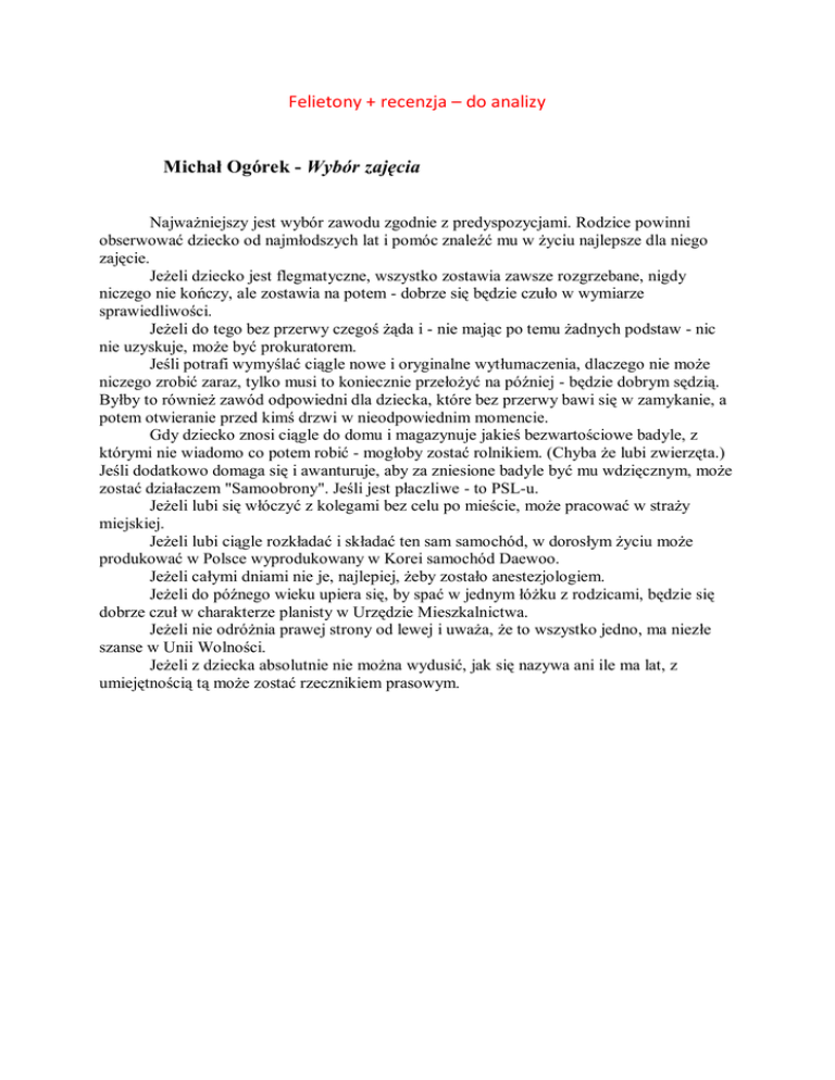 Felietony + recenzja – do analizy Michał Ogórek