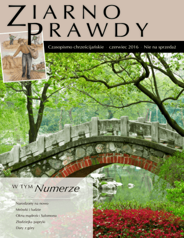 I A R N O Z RAWDY P W TYM Czasopismo chrześcijańskie · czerwiec 2016 · Nie na sprzedaż Numerze Narodzony na nowo Mrówki i ludzie Okna mądrości Salomona Złodziejka papryki Dary z góry Ziarno Prawdy Spis Wydawca: Treści Christian Aid Ministries PO Box 360 Berlin, OH 44610 USA Wydawane w Polsce przez: Międzynarodowa Misja Anabaptystyczna ul. Miłosza 8 05–300 Stara Niedziałka [email protected] www.ziarnoprawdy.pl Komitet wykonawczy: David Troyer | Paul Weaver Roman B. Mullet James R. Mullet Philip Troyer | Eli Weaver Komitet rewizyjny: Ernest Hochstetler Perry Troyer Johnny Miller Clay Zimmerman Fred Miller Redaktor naczelny: Alvin Mast Zastępca redaktora naczelnego: James K. Nolt Skład komputerowy: Kristi Yoder | SuAnn Troyer Paweł Szczepanik Korektorzy: Jolanta Ławrynowicz Szymon Matusiak Zdjęcie na okładce: Shutterstock Czasopismo jest bezpłatne. Dobrowolne ofiary można wpłacać na nasze konto: Fundacja „Dziedzictwo” ING Bank Śląski nr: 91 1050 1894 1000 0022 9084 2752 © 2016 Całość niniejszej publikacji ani żadna jej część nie może być reprodukowana bez pisemnej zgody Christian Aid Ministries. Wszelkie prawa zastrzeżone. www.christianaidministries.org 2 Ziarno Prawdy • czerwiec 2016 Artykuł wstępny Narodzony na nowo. . . . . . . . . . . . . . . . . . . . . . . . . . . . . 3 Nauczanie Mrówki i ludzie . . . . . . . . . . . . . . . . . . . . . . . . . . . . . . . . 5 Łaska dawania. . . . . . . . . . . . . . . . . . . . . . . . . . . . . . . . . . 7 Mowa. . . . . . . . . . . . . . . . . . . . . . . . . . . . . . . . . . . . . . . . 9 Dla rodziców Nie, dziękuję . . . . . . . . . . . . . . . . . . . . . . . . . . . . . . . . . 12 Okna mądrości Salomona. . . . . . . . . . . . . . . . . . . . . . . . 16 Migdałowiec – kwiat obietnicy. . . . . . . . . . . . . . . . . . . . 17 Część historyczna Pochodzenie anabaptystów (część 2). . . . . . . . . . . . . . . . . 19 Część praktyczna Rzetelne wagi i pełne odważniki . . . . . . . . . . . . . . . . . . . 23 Dla młodzieży Wartość wiedzy. . . . . . . . . . . . . . . . . . . . . . . . . . . . . . . . Miłość. . . . . . . . . . . . . . . . . . . . . . . . . . . . . . . . . . . . . . . Podobieństwo o talentach. . . . . . . . . . . . . . . . . . . . . . . . Złodziejka papryki . . . . . . . . . . . . . . . . . . . . . . . . . . . . . 27 28 29 30 Kącik dla dzieci Staś jest za mały . . . . . . . . . . . . . . . . . . . . . . . . . . . . . . . 32 Dary z góry. . . . . . . . . . . . . . . . . . . . . . . . . . . . . . . . . . . 33 Uwielbiać Boga. . . . . . . . . . . . . . . . . . . . . . . . . . . . . . . . 35 Fragment książki Odwaga z uśmiechem (część 3). . . . . . . . . . . . . . . . . . . . 36 Poezja Niebo. . . . . . . . . . . . . . . . . . . . . . . . . . . . . . . . . . . . . . . 43 Ostatnia strona Ocaleni górnicy. . . . . . . . . . . . . . . . . . . . . . . . . . . . . . . . 44 „Ezdrasz otworzył księgę na oczach całego ludu – stał bowiem na podwyższeniu; kiedy zaś ją otworzył, wszyscy zebrani wstali.” Księga Nehemiasza 8,5 Artykuł WSTĘPNY Narodzony na nowo —Alvin Mast W ósmym rozdziale Listu do Rzymian czytamy, że zamysł ciała- to śmierć. Człowiek myślący cieleśnie nie przejmuje się tym, czego oczekuje od niego Bóg i nie poddaje się prawu Bożemu. Cielesny umysł jest wrogi Bogu. Osoba myśląca w ten sposób nie jest w stanie myśleć o Królestwie Bożym ani podobać się Panu. Lecz rozdział ten mówi również, że zamysł Ducha to życie i pokój, a człowiek myślący o tym, co duchowe, jest zrodzony z Ducha – oddał życie Bogu i wierzy, że podobanie się Jemu jest najwyższym honorem. Skąd wiesz, że chodzisz według ducha? Przede wszystkim upewnij się, że narodziłeś się na nowo. Człowiek prawdziwie zrodzony z Ducha to taki, który się upamiętał, odwrócił się od swoich nikczemności i w wierze zwrócił się do Jezusa Chrystusa. Pozostawił za sobą grzeszne pragnienia serca i dąży do świętości w Bogu. Jeśli chcesz chodzić w Duchu, zacznij poważnie traktować Pana i porzuć cielesny tryb życia. Jedynie dzięki nowemu narodzeniu możesz stać się pasjonatem spraw Bożych. Horatius Bonar powiedział: Jeśli mam żyć jak dziecko Boże, to muszę nim być i muszę o tym wiedzieć. Inaczej moje życie będzie tylko nędzną imitacją, sztucznym mechanizmem, odgrywaniem pewnej roli; i będzie pozbawione życiowego ciepła i siły. W tym miejscu wielu zawodzi. Próbują żyć jak synowie, żeby uczynić się synami, zapominając o prostym planie Bożym uzyskania synostwa w jednej chwili: Tym zaś, którzy Go przyjęli, dał prawo stać się dziećmi Bożymi (J 1,12). W Liście do Rzymian 8,14 czytamy, że osoba narodzona na nowo będzie prowadzona przez Ducha Świętego. „Prowadzona” to inaczej „sterowana”. Odrodzonym człowiekiem „A w sercach waszych niech rządzi pokój Chrystusowy... a bądźcie wdzięczni.” List do Kolosan 3,15 3 steruje Duch niczym głodną owcą idącą na pastwisko. To jest oznaka bycia chrześcijaninem. Nie może być tak, że nowo narodzona osoba nie ma pragnienia, żeby żyć dla Pana. Skosztowaliśmy, że On jest dobry i wiemy, że odpuścił nam grzechy. To kieruje nami, byśmy czcili i uwielbiali zmartwychwstałego Chrystusa (Ps 34,9; 1 J 2,12). Prowadzenie Duchem pokazuje, że jesteśmy dziećmi Bożymi. Powinniśmy być ludźmi tak mocno prowadzonymi przez Ducha, żeby nie było żadnych wątpliwości, czy jesteśmy chrześcijanami czy nie. Widząc kogoś, kto nie wydaje wystarczającego owocu, po którym można by poznać, czy chodzi z Panem, stwierdzamy że brakuje mu pasji od Ducha Świętego. Coś się musi stać w życiu takiej osoby: Bóg musi wyrwać go z objęć tego świata. To jak z rozpaleniem ognia – jeśli nie płonie wystarczająco jasno, trzeba dołożyć drewna. Pragnienie uwielbienia Boga rodzi owoc. Możemy używać wielkich słów o swojej służbie