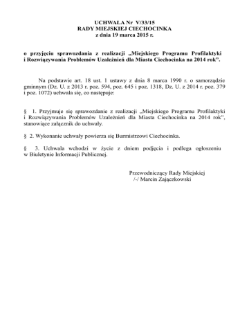 UCHWAŁA Nr V/33/15 RADY MIEJSKIEJ - Ciechocinek