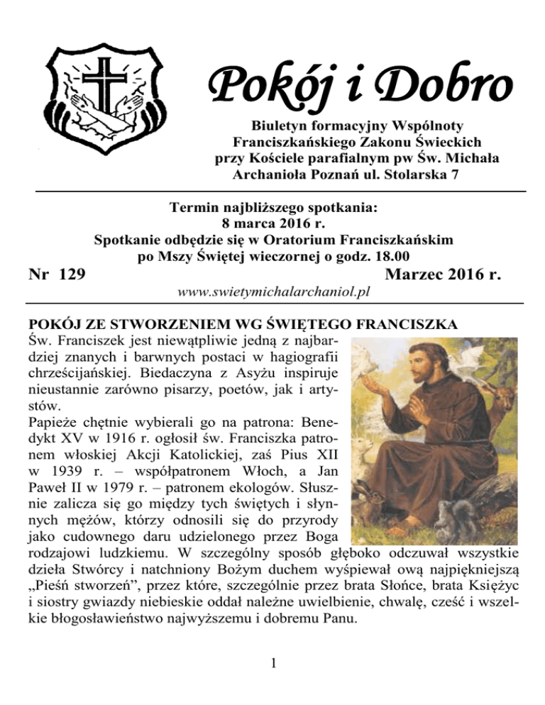 Pokój i dobro 129 marzec 2016 - Parafia rzymskokatolicka pw. św