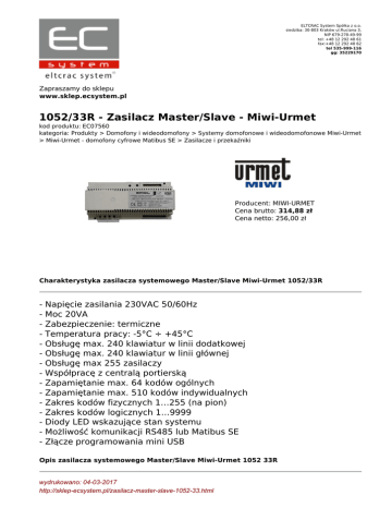 1052/33R - Zasilacz Master/Slave - Miwi-Urmet - sklep