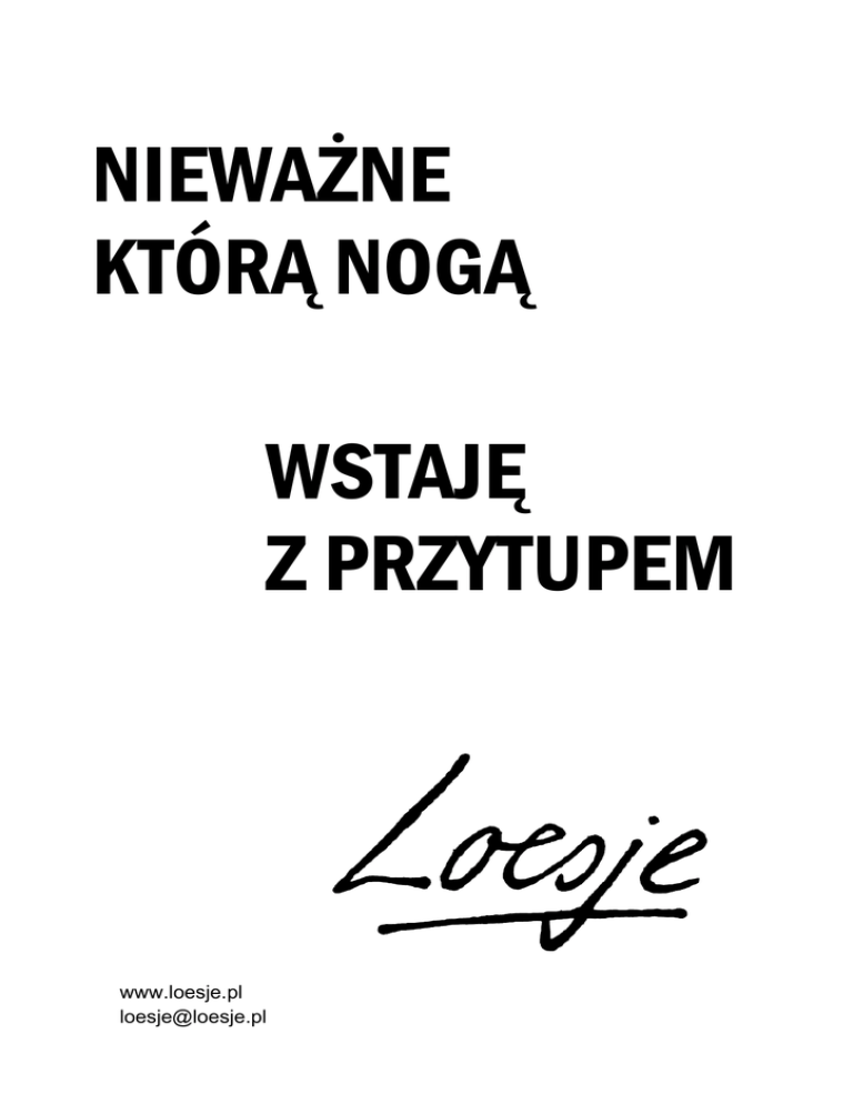 NIEWAŻNE KTÓRĄ NOGĄ WSTAJĘ Z PRZYTUPEM www.loesje.pl [email protected]