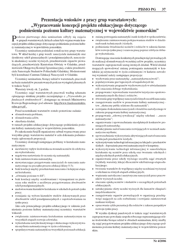 04/2006 - str.37 Prezentacja wyników z prac grup warsztatowych