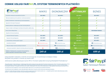 biznes OPTYMALNY mikro Cennik UsłUgi Fairpay.pl