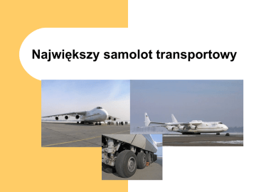 Największy samolot transportowy Czy wiesz, że … Największym samolotem służącym do przewozu ładunków jest rosyjski An-225 „Mrija” ładownia o rozmiarach 43,3x6,4x4,4 m może pomieścić 80 samochodów osobowych lub 16 kontenerów. Załadunek odbywa się poprzez wielkie wrota w części ogonowej lub przez podnoszony nos kadłuba. Wymiary i osiągi - Wymiary: Rozpiętość – 88,40 m Długość – 84 m Wysokość – 18,10 m Powierzchnia nośna – 995 m2 Masa własna – ok. 300 000 kg Masa użyteczna – ok. 300 000 kg Masa całkowita - 600 000 kg Silniki – D18T o ciągu 229,5 kN każdy Osiągi: Prędkość maksymalna – 850 km/h Prędkość minimalna – 250 km/h Prędkość przelotowa – 800 km/h Pułap – 10 000 m Zasięg z pełnym ładunkiem – 4 500 km An-225 Marzeniem wielu cywilnych i wojskowych specjalistów zajmujących się logistyką jest możliwość jak najszybszego dostarczenia możliwie dużego ładunku na dalekie odległości. Bez wątpienia zadanie to najlepiej jest w stanie spełnić największy na świecie samolot transportowy, zdolny zabrać na pokład aż 250 ton frachtu - Antonow An-225. Sześciosilnikowy kolos otrzymał nazwę Mrija, co w języku ukraińskim oznacza marzenie. Rzeczywiście dosłownie i w przenośni doskonale oddaje ona niezwykły charakter tej unikatowej konstrukcji. Niezwykła konstrukcja Wraz z rozwojem projektu rosyjskiego promu kosmicznego Buran w połowie lat 80. pojawiła się konieczność stworzenia samolotu, który zdolny byłby do transportu wahadłowców. Wzorem rozwiązania amerykańskiego, w którym do podobnych celów dostosowano Boeinga 747 NASA, rosyjscy konstruktorzy przystąpili do poszukiwania płatowca, który po niezbędnych modyfikacjach mógłby transportować gotowy prom kosmiczny. Do dnia dzisiejszego konstrukcja nie ma sobie równych zarówno pod względem ciężaru, jak i długości (84 m). Skrzydła An-225 mają rozpiętość 88,4 m, ale w tym przypadku musi on uznać wyższość drewnianego Hughes HK-1 Hercules (zwanego również Spruce Goose). Długość kabiny transportowej Mriji to 43 m. O mało co nie na złomowisku… 13 maja 1989 An-225 po raz pierwszy wyniósł na swoim grzbiecie Burana i kilka miesięcy później w takiej właśnie konfiguracji największy transportowiec świata z pierwszym rosyjskim promem kosmicznym gościły na salonie w Paryżu. Na początku lat 90. program Buran został zawieszony ze względów finansowych, a wraz z nim zakończyła się pierwsza część kariery An-225. Płatowiec zarejestrowany został na Ukrainie (UR-82060, następnie UR-480182) i przez wiele lat stanowił magazyn części zamiennych dla Anów-124 należących do biura Antonowa. W kwietniu 1994 został oficjalnie wycofany z eksploatacji - do tego czasu spędził w powietrzu jedynie 671 godzin i wykonał 339 lotów. Nowe zadanie … Kiedy pod koniec lat 90. na rynku przewozów cargo pojawiło się zapotrzebowanie na przewozy ładunków o gabarytach i ciężarze przekraczających możliwości największych samolotów transportowych, ponownie zwrócono uwagę na Mriję. W tym czasie samolot zaparkowany na fabrycznym lotnisku Antonowa na Ukrainie (Gostomel) znajdował się w opłakanym stanie. Na szczęście perspektywy nowej, tym razem komercyjnej kariery Mriji okazały się dla wytwórni na tyle obiecujące, że postanowiono przywrócić samolot do życia. Po długim i kosztownym remoncie 7 maja 2001 jedyny zbudowany dotychczas An-225 ponownie wzbił się w powietrze. Możliwości … Niezwykłe możliwości największego samolotu transportowego doceniane są dziś na całym świecie. OKB Antonowa, użytkownik Mriji, eksploatuje samolot w porozumieniu z jednym z najbardziej znanych operatorów cargo na świecie - brytyjskim Air Foyle Heavy Lift. Awionika Ana-225 dostosowana została do obecnie wymaganych standardów (m.in. TCAS). Według materiałów reklamowych Air Foyle samolot oferowany jest do przewozu ładunków o maksymalnych wymiarach do 70 m na mocowaniach zewnętrznych; wewnątrz kabiny możliwy jest przewóz frachtu o gabarytach 43x6,4x4,4 m. Zasięg samolotu z ładunkiem 200 000 kg wynosi aż 4500 km. Dziękuję za uwagę Opracowała: mgr Magdalena Gajda ZSP nr 4 w Krośnie