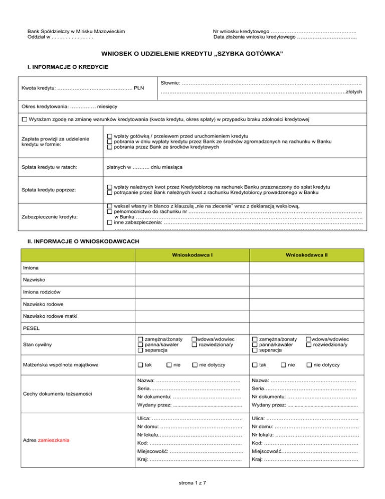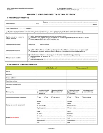 wniosek kredytowy - Bank Spółdzielczy w Mińsku Mazowieckim