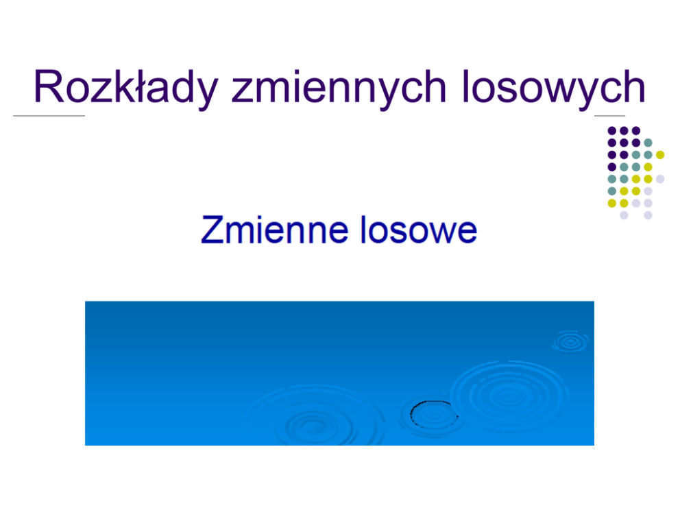 Rozkłady zmiennych losowych Wprowadzenie Badamy pewną zbiorowość czyli populację pod względem występowania jakiejś cechy. Pobieramy próbę i na podstawie tej próby wyznaczamy pewne charakterystyki. Jeśli próba jest duża tworzymy szereg rozdzielczy zawierający wartości badanej cechy oraz liczność i obliczaną na tej podstawie, częstość występowania badanej cechy a zatem i prawdopodobieństwo występowania badanej cechy co oznacza, że cechę tą możemy nazywać zmienną losową. Autor wykładu: dr inż. Małgorzata Rabiej Histogram utworzony na podstawie tego szeregu – to rozkład empiryczny badanej cechy. Jeśli np. rzucamy kostką a zmienną losową jest liczba wyrzuconych oczek to (jeśli kostka jest symetryczna) prawdopodobieństwo wyrzucenia każdej z liczb 1 – 6 jest takie samo, zatem w histogramie wszystkie słupki będą takie same. Autor wykładu: dr inż. Małgorzata Rabiej Weźmy inny przypadek. Populację tworzą klienci pewnego sklepu z odzieżą. Badamy preferencje klientów dotyczącą wybranego koloru. Do wyboru jest 10 kolorów. Jeśli okaże się, że klienci wybierają wszystkie kolory z takim samym prawdopodobieństwem czyli 1/10, oznacza to, że rozkład jest rozkładem równomiernym. Autor wykładu: dr inż. Małgorzata Rabiej Rozkład równomierny to rozkład, w którym wszystkie prawdopodobieństwa są jednakowe. Autor wykładu: dr inż. Małgorzata Rabiej Jeśli natomiast będziemy badać płeć osoby, która robi zakupy w tym sklepie może się okazać, że znacznie częściej jest to kobieta niż mężczyzna. Badaną cechą a więc zmienną losową jest płeć. Zmienna ta może przyjmować dwie wartości. Definiujemy zmienną losową X(Kobieta)=1, X(mężczyzna)=2 Możemy obliczyć częstość czyli prawdopodobieństwo pojawiania się kobiety i mężczyzny. Taka zmienna ma rozkład zero-jedynkowy. Autor wykładu: dr inż. Małgorzata Rabiej Rozkład zero-jedynkowy. Zmienna losowa X ma rozkład zerojedynkowy, jeśli przyjmuje 2 wartości i jej funkcja prawdopodobieństwa jest następująca: P(X = 0) = p P(X = 1) = 1-p = q xi pi 0 p (0<p <1) 1 1-p Autor wykładu: dr inż. Małgorzata Rabiej Rozkład zero-jedynkowy. Wartość oczekiwana = p Wariancja D2(X) = p(1-p) Autor wykładu: dr inż. Małgorzata Rabiej Z rozkładem zero-jedynkowym mamy do czynienia, jeśli badamy wadliwość wyrobu (dobry, zły), awaryjność maszyn: zepsuje się lub nie itd. Przypuśćmy, że badamy awaryjność 4 maszyn. Cecha ta ma dla każdej maszyny rozkład zerojedynkowy i można obliczyć, że prawdopodobieństwo, że maszyna w danym dniu zepsuje się wynosi np. 0,05. Nas interesuje, ile spośród tych 4 maszyn ulegnie awarii w danym dniu. Mamy zatem obliczyć, jakie jest prawdopodobieństwo, że w danym dniu awarii ulegnie 0, 1, 2, 3, 4 maszyn. Autor wykładu: dr inż. Małgorzata Rabiej Zmienną losową jest zatem liczba maszyn, które ulegną awarii w danym dniu. Zmienna ta ma rozkład dwumianowy. Autor wykładu: dr inż. Małgorzata Rabiej Rozkład dwumianowyBernoulliego Zmienna losowa X ma rozkład dwumianowy, jeśli przyjmuje wartości k = 0, 1,, ..., n z prawdopodobieństwami określonymi wzorem n k n k P(X k ) p (1 p) k Autor wykładu: dr inż. Małgorzata Rabiej Wartość oczekiwana i wariancja P(Xi=1)=p, xi pi P(Xi = 0) = (1-p) 1 n p(1 p) n 1 1 2 ... n n 2 p (1 p) n 2 2 Autor wykładu: dr inż. Małgorzata Rabiej Wartość oczekiwana n E ( X ) xi pi np i 1 Autor wykładu: dr inż. Małgorzata Rabiej Wariancja rozkładu dwumianowego D ( X ) np(1 p) 2 Autor wykładu: dr inż. Małgorzata Rabiej Rozkład Poissona Zmienna losowa X przyjmująca wartości k = 0, 1, 2.. ma rozkład Poissona o parametrze , jeśli jej funkcja prawdopodobieństwa opisana jest wzorem: P( X k ) e k! dla k = 0, 1, ..., gdzie jest dodatnia stałą, > 0. k Stwierdzono, że rozkład Poissona ma liczba usterek w produkowanych urządzeniach liczba skaz na określonej powierzchni materiału, liczba cząsteczek emitowana przez substancję radioaktywną w krótkim okresie, liczba błędów drukarskich na jednej stronie, wadliwość produkcji awaryjność maszyn. Autor wykładu: dr inż. Małgorzata Rabiej Rozkład Poissona. Wartość oczekiwana i wariancja E(X) = D2(X) = Znając zatem wartość oczekiwaną czyli wartość średnią z próby, możemy obliczyć funkcję prawdopodobieństwa tego rozkładu. Autor wykładu: dr inż. Małgorzata Rabiej Rozkłady zmiennej losowej ciągłej Autor wykładu: dr inż. Małgorzata Rabiej Rozkład prostokątny Zmienna losowa ciągła ma rozkład prostokątny, jeśli jej funkcja gęstości określona jest następująco: 1 axb f (x) b a x a lub x b 0 Autor wykładu: dr inż. Małgorzata Rabiej Funkcja gęstości w rozkładzie prostokątnym Autor wykładu: dr inż. Małgorzata Rabiej Wartość oczekiwana ab E( X ) 2 Wariancja (b a ) D ( X) 12 2 2 Autor wykładu: dr inż. Małgorzata Rabiej Rozkład normalny Zmienna losowa X ma rozkład normalny o parametrach m i , co w skrócie zapisuje się X : N(m, ), jeśli jej funkcja gęstości ma następującą postać: 1 f (x) e 2 - < x < , ( x m)2 2 2 >0 Autor wykładu: dr inż. Małgorzata Rabiej Wykres funkcji gęstości Autor wykładu: dr inż. Małgorzata Rabiej Dystrybuanta x 1 F( x ) e 2 ( t m)2 22 dt Autor wykładu: dr inż. Małgorzata Rabiej Wartość oczekiwana E( X ) m Autor wykładu: dr inż. Małgorzata Rabiej Wariancja D2 ( X ) 2 Autor wykładu: dr inż. Małgorzata Rabiej Przykład Waga mężczyzn w pewnej populacji ma rozkład N(70,6). Oznacza to, że waga mężczyzn jest zmienną losową o rozkładzie normalnym ze średnią m = 70 kg i odchyleniu standardowym = 6 kg. Autor wykładu: dr inż. Małgorzata Rabiej 75 P(70 X 75) f ( x)dx 70 Autor wykładu: dr inż. Małgorzata Rabiej P(70 < X <=75)=F(75) – F(70) Autor wykładu: dr inż. Małgorzata Rabiej Autor wykładu: dr inż. Małgorzata Rabiej Obliczenie prawdopodobieństwa, że zmienna losowa o rozkładzie normalnym N(m,) przyjmuje wartość 