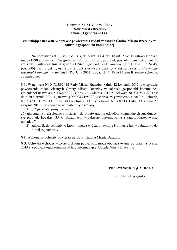 Uchwała Nr XLV / 225 /2013 - Urząd Miasta Brzeziny