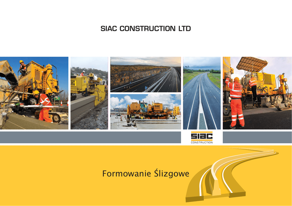 SIAC CONSTRUCTION LTD Formowanie Ślizgowe Wprowadzenie Bezpieczeństwo i Higiena Pracy Zapewnienie jakości i ochrona środowiska Betonowe bariery drogowe formowane na budowie Połączenia Bariery stalowe Elementy odprowadzające wodę Krawęniki Zastosowania specjalne Nawierzchnie z betonu cementowego Aprobaty i licencje Zrealizowane zadania Wprowadzenie SIAC Construction Ltd jest prekursorem i liderem technologii ślizgowego formowania betonu w Irlandii. Zastosowania tej technologii siegają 1981 roku, kiedy to wprowadziliśmy na rynek pierwsza automatyczną ślizgową formę do betonu. Nasze wieloletnie doświadczenie, umiejętność dostosowania technologii do potrzeb klienta oraz wysoka jakość usług przy zachowaniu konkurencyjnych cen zapewniły nam doskonałą reputację. Nasz nowoczesny park maszynowy, w tym 8 maszyn formujących oraz 40 typó w deskowań pozwala nam realizować nawet najbardziej skomplikowane zadania. Nasza oferta obejmuje wykonanie formowanych na budowie betonowych elementó w stosowanych w budownictwie komunikacyjnym, między innymi krawęnikó w, elementó w odwodnienia, nawierzchni betonowych, barier ochronnych, podbudó w toró w i torowisk oraz ścian oporowych. 30 lat doświadczenia pozwoliło nam zgromadzić wiedzę obejmującą wszelkie aspekty procesu formowania, począwszy od technologii betonu, poprzez proces formowania do mechaniki maszyn. Wdroenie innowacyjnych metod projektowania pozwala na niemal dowolne dostosowanie maszyn i systemu deskowań do potrzeb klienta w celu wykonania najbardziej specjalistycznych i nietypowych elemetó w. Technologia formowania ślizgowego znalazła zastosowanie przy budowie i utrzymaniu autostrad, lotnisk, dró g kolejowych, w budownictwie przemysłowym, budownictwie mieszkaniowym, na obiektach sportowych i uyteczności publicznej. Wśró d naszych klientó w mona wymienić inwestoró w prywatnych oraz due instytucje publiczne, w tym władze lokalne i agencje rządowe Irlandii i Wielkiej Brytanii. Bezpieczenestwo i Higiena Pracy Dbałość o bezpieczeństwo w pracy pozostaje jednym z podstawowych obowiązkó w kadry kierowniczej i wszystkich pracownikó w firmy SIAC. Wszelkie prace wykonywane są według ściśle określonych procedur i regulaminu oraz zgodnie z przepisami BHP. Nasz Oddział Formowania Ślizgowego stosuje dodatkowe procedury, ktore odzwierciedlają specyfikę technologii oraz pozwalaja zminimalizować ryzyka z nią zwiazane. Firma stosuje wymagający, wewnętrzny system zarządzania i kontroli BHP. Wyniki audytó w poró wnywane są z najlepszymi w brany w celu ciągłego doskonalenia procedur. Jesteśmy jedną z nielicznych firm, ktore zdobyły akredytacje w systemie EN 18001 oraz Safe-T certyfikat. Pozytywne wyniki zewnętrznych kontroli i audytó w oraz uznanie dla stosowanych procedur umoliwiło firmie zdobycie zaró wno powyszych certyfikató w jak i nagró d Irlandzkiej Krajowej Organizacji Bezpieczeństwa Pracy (National Irish Safety Organisation) oraz Brytyjskiego Komitetu BHP (British Safety Council). Ochrona Środowiska SIAC stosuje procedury, ktore zapewniają ograniczenie negatywnego wpływu robó t budowlanych na środowisko. Opró cz certyfikatu Safe-T firma posiada rownie akredytację ISO 14001, powszechnie uznany za podstawowy międzynarodowy standard zarządzania procedurami ochrony srodowiska. Zastosowanie elementó w betonowych jest zgodne z zasadami Zró wnowaonego Rozwoju a uwzględniając jego długowieczność i minimalne wymagania konserwacji wpływa na zmniejszenie emisji dwutlenku węgla w poró wnaniu z alternatywnymi elementami stalowymi. Zapewnienie i Kontrola Jakości Nasz system kontroli jakości wykracza ponad wymagania stawiane przez międzynarodowy system zapewnienia jakości ISO 9001:2000. Stosowane procedury sprawiają, e wymagania naszych Klientó w sa spełnione na kadym etapie projektu. Oddział Formowania Ślizgowego firmy SIAC uzyskał niezaleny certyfikat ISO 9001:2000. Opró cz regularnych rygorystycznych kontroli wykonywanych przez niezalene jednostki certyfikujące, SIAC opracował i stosuje system wewnętrznych audytó w na wszystkich poziomach organizacyjnych firmy oraz kontrole realizowanych projektó w. W ramach systemu zarządzania jakością kontrolujemy rownie naszych dostawcó w i podwykonawcó w, co zapewnia ze ich produkty i usługi,bedące częścią projektó w realizowanych przez SIAC, spełniaja wymagania naszych klientó w. Drogowa bariera ochronna wylewana na budowie SIAC Construction jest najwiekszym wykonawcą betonowych barrier drogowych pełnych w technologii ślizgowej od czasu ich wprowadzenia w 2002 roku w Irlandii. SIAC zainstalował ponad 300 km barier co pochłonęło przeszło 100 000 m3 betonu. Standardowa bariera stosowana w pasie rozdziału zapewnia minimalny poziom powstrzymywania H2 przy maksymalnej szerokości pracującej W2. Sztywniejsze bariery w wersji H4a stosuje się przy podporach mostowych, drogach kolejowych oraz innych obiektach gdzie wymagane jest szczegó lne zabezpieczenie. Odpowiednio zaprojektowane bariery betonowe opró cz swego typowego zastosowania mogą jednocześnie pełnić funkcje konstrukcji oporowych. SIAC jako pierwszy wykonał taką barierę w Wielkiej Brytanii oraz Irlandii. Wszelkie bariery betonowe wykonane przez SIAC na drogach publicznych są zgodne z europejską normą EN 1317 i odpowiadają najwyszym standardom jakości. Połączenia Złooność zagadnień technicznych w budownictwie często nakłada na nas obowiązek dostosowania naszych produktó w do istniejących rozwiązań konstrukcyjnych. Potrafimy dostosować kształt naszych deskowań do istniejących obiektó w w celu ich właściwego połaczenia z nowowykonywanymi elementami. Bariery stalowe Firma SIAC posiada licencję na wykonywanie rozbieralnych barier stalowych instalowanych na przejazdach awaryjnych w pasie rozdziału. Parametry techniczne bariery stalowej odpowiadają standardom bariery betonowej. Prosty system połączeni