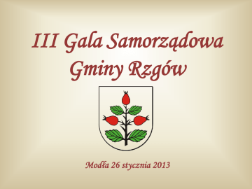 III Gala Samorządowa Gminy Rzgów Modła 26 stycznia 2013 STATUETKI WÓJTA GMINY RZGÓW ZA ROK 2012 Nominowani do Statuetki Wójta Gminy Rzgów w kategorii : ORGANIZACJA ROKU 1. Ludowy Zespół Sportowy „Orzeł” Osiecza 2. Stowarzyszenie Koło Gospodyń Wiejskich w Sławsku 3. Stowarzyszenie „Dzikie Bobry” 4. Stowarzyszenie Koło Gospodyń Wiejskich w Zarzewku Statuetkę Wójta Gminy Rzgów otrzymuje: Stowarzyszenie Koło Gospodyń Wiejskich w Sławsku Nominowani do Statuetki Wójta Gminy Rzgów w kategorii : PRODUKT ROKU „MARKA RZGOWSKA” 1. Jesiotr i kawior ekologiczny produkowany w firmie „Ekokawior” w Rzgowie Drugim 2. Drób hodowany w gospodarstwie Państwa Wieczorek w Świątnikach 3. „Gęś po Osiecku” przyrządzana przez Panią Alicję Ptak z Zarzewa 4. Warzywa produkowane w gospodarstwie Pana Marka Olejniczaka w Błonicach Statuetkę Wójta Gminy Rzgów otrzymuje: „Gęś po Osiecku” przyrządzana przez Panią Alicję Ptak z Zarzewa wg. przepisu Pani Jadwigi Marciniec z Osieczy Nominowani do Statuetki Wójta Gminy Rzgów w kategorii : FIRMA – PRZEDSIĘBIORCA ROKU 2012 1. Usługi Instalacyjno – Elektryczne Eugeniusz Piętka – Dąbrowica 2. Sklep Lewiatan w Sławsku – Państwa Małgorzaty i Sławomira Lachowicz z Konina 3. Firma SATAG Rafał Janc - Sławsk 4. Piotr Jasiak „Restauracja Nadwarciańska” w Rzgowie 5. Firma „KOJAK”Leszek Grzegorczyk - Zastruże Statuetkę Wójta Gminy Rzgów otrzymuje: Sklep Lewiatan w Sławsku – Państwa Małgorzaty i Sławomira Lachowiczów z Konina Nominowani do Statuetki Wójta Gminy Rzgów w kategorii : SPOŁECZNIK ROKU 2012 1. Michał Janc Sławsk - Sławsk 2. Robert Frąckowiak – Osiecza Druga 3. Anna Lewandowska - Zarzewek 4. Teresa Kwiatkowska – Sławsk 5. Jarosław Grześkiewicz, Tomasz Kałużny - Zarzew Statuetkę Wójta Gminy Rzgów otrzymuje: Robert Frąckowiak – Osiecza Druga Nominowani do Statuetki Wójta Gminy Rzgów w kategorii : NAUCZYCIEL ROKU 2012 1. Olga Banaszak – SP Rzgów 2. Iwona Maziarz – Zespół Szkół w Sławsku 3. Sławomir Kaliszewski – Zespół Szkół w Sławsku 4. Animatorzy Moje Boisko „Orlik” 2012- Małgorzata Kreczmer i Przemysław Kopczyński 5. Animator Sportu Dzieci i Młodzieży – Karol Kuszka Statuetkę Wójta Gminy Rzgów otrzymuje: Sławomir Kaliszewski Zespół Szkół w Sławsku Nominowani do Statuetki Wójta Gminy Rzgów w kategorii : SPONSOR ROKU 2012 1. Ludowy Bank Spółdzielczy w Strzałkowie 2. PAK Kopalnia Węgla Brunatnego Konin S.A 3. Spółdzielnia Kółek Rolniczych w Rzgowie w likwidacji 4. Wspólnota Gruntowa Wsi Sławsk 5. „Instal-Kran” - Krągola Statuetkę Wójta Gminy Rzgów otrzymuje Spółdzielnia Kółek Rolniczych w Rzgowie w likwidacji Nominowani do Statuetki Wójta Gminy Rzgów w kategorii : ROLNIK ROKU 2012 1. 2. 3. 4. Romuald Sikorski – Bożatki Michał Sobczak – Osiecza Pierwsza Jerzy Michalski – Bożatki Leszek i Agnieszka Piętkowie– Błonice Statuetkę Wójta Gminy Rzgów otrzymuje: Leszek i Agnieszka Piętkowie Błonice Nominowani do Statuetki Wójta Gminy Rzgów w kategorii : INICJATYWA ROKU 2012 1. Utworzenie miejsca odpoczynku dla podróżnych przy promie w Sławsku tzw. Przystani w Sławsku – Stowarzyszenie „Dzikie Bobry” 2. Modernizacja remizy strażackiej w Kurowie 3. Utworzenie Grupy Rowerowej „Optymiści Rowerzyści” 4. Budowa placu zabaw przy Zespole Szkół w Sławsku 5. Powołanie „Uniwersytetu Trzeciego Wieku” 6. Zakup lekkiego samochodu ratowniczo-gaśniczego przez OSP Rzgów 7. Realizacja inwestycji w ramach Funduszu Sołeckiego w 20 Sołectwach Gminy Rzgów 8. Budowa nawierzchni drogi przez mieszkańców ulicy Brzozowej w Brannie 9. Budowa nawierzchni drogi przez mieszkańców ulicy Pogodnej w Sławsku 10. Organizacja I Festynu Wiejskiego w Goździkowie przez Sołectwo Goździków 11. Organizacja Zjazdu Rodziny Jakubowskich w Zastużu przez Bartłomieja Jakubowskiego i jego synów 12. Odsłonięcie pomnika Marcina ze Sławska herbu Zaremba Statuetkę Wójta Gminy Rzgów otrzymuje: Budowa placu zabaw przy Zespole Szkół w Sławsku Nominowani do Statuetki Wójta Gminy Rzgów w kategorii : TALENT ROKU 2012 1. Natalia Michalak – Zespół Szkół w Sławsku 2. Emilia Andrzejak, Patrycja Kruszyńska – Szkoła Podstawowa w Osieczy 3. Oliwia Fabiszak – Szkoła Podstawowa w Grabienicach 4. Maciej Gil – Zespół Szkół w Sławsku 5. Grzegorz Wielgosik – Szkoła Podstawowa w Rzgowie 6. Julia Karmowska – Zespół Szkół w Sławsku Statuetkę Wójta Gminy Rzgów otrzymuje: Maciej Gil – Zespół Szkół w Sławsku Nominowani do Statuetki Wójta Gminy Rzgów w kategorii: ZA PROMOCJĘ GMINY W 2012 ROKU 1. Henryk Nowacki – zwycięzca Plebiscytu na najpopularniejszego sołtysa regionu konińskiego 2. Sołectwo Sławsk 3. Gminna Liga Halowa „Rzgów” 4. Radio Konin 5. Informator Samorządowy wydawany przez Gminne Centrum Informacji Statuetkę Wójta Gminy Rzgów otrzymuje: Henryk Nowacki – zwycięzca Plebiscytu na najpopularniejszego sołtysa regionu konińskiego Nominowani do Statuetki Wójta Gminy Rzgów w kategorii: SAMORZĄDOWIEC ROKU 2012 1. Sylwia Pawlicka - Modła 2. Michał Rek – Osiecza Pierwsza 3. Marian Brzęcki – Zarzewek 4. Wiesław Czaja - Sławsk Statuetkę Wójta Gminy Rzgów otrzymuje: Wiesław Czaja - Sławsk Rzeźbę Marcina ze Sławska otrzymała Przewodnicząca Rady Gminy Rzgów Ewa Biernacka za wieloletnią pracę zawodową i społeczną na rzecz mieszkańców Gminy Rzgów