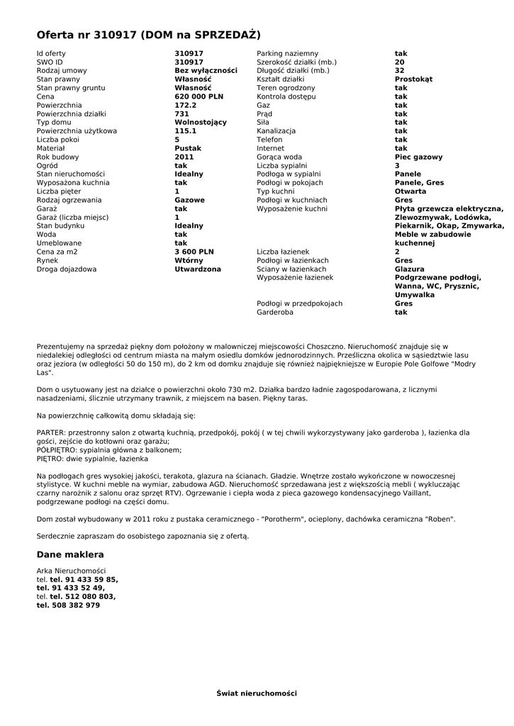 Oferta nr 310917 (DOM na SPRZEDAŻ)