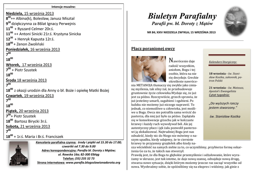 BIULETYN nr 84 - Parafia Błogosławionej Doroty z Mątów w Elblągu