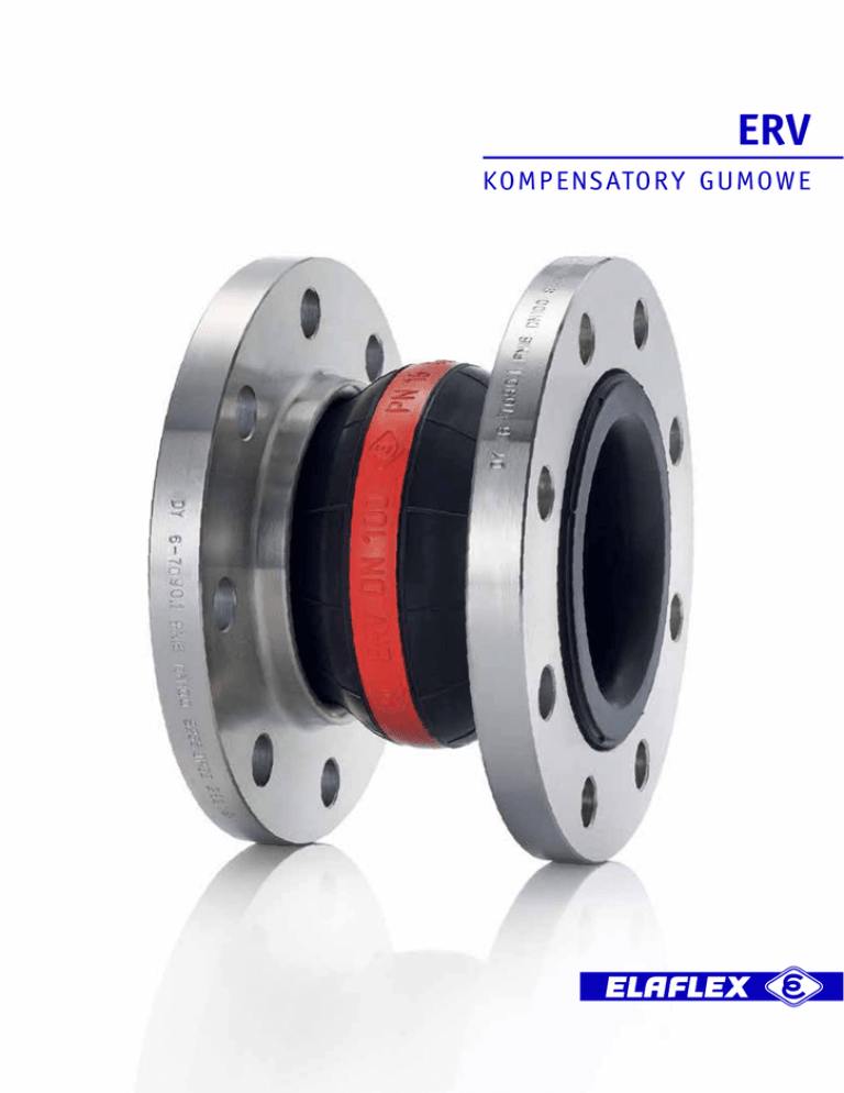 ERV KOMPENSATORY GUMOWE SPIS TREŚCI 04|CONTITECH 06|ELAFLEX 08 | Czym są Kompensatory Gumowe 10 | Argumenty za ERV 12 | Produkcja CONTITECH 13 | Produkcja ELAFLEX 14 | Wybór Kompensatorów - Wskazówki 15|Certifikaty 16 | Konfigurator ERV 17 | Rodzina produktów ERV 18|Zastosowania 20|Kontakt 02 | Elaflex Kompensatory Gumowe ELASTYCZNE POŁĄCZENIA RUR, KLASY PREMIUM. Do budowy rurociągów potrzebne są kompensatory – w celu absorbcji rozszerzalności termicznej, redukcji wibracji i hałasu. Nasze kompensatory gumowe 'ERV' spełniają odpowiedzialnie te zadania - od 1956 roku. Dzięki ich konstrukcji i doskonałej jakości, nasze kompensatory stały się międzynarodowym standardem przemysłowym. Ta broszura przedstawia przegląd własności technicznych i pomaga wybrać produkt odpowiadajacy potrzebom. Elaflex Kompensatory Gumowe | 03 CONTITECH – ZRÓDŁO KOMPETENCJI W ZAKRESIE MIESZKÓW GUMOWYCH CONTITECH. Engineering Next Level Będąc wiodącym inicjatorami nowych technologii i ekspertami w dziedzinie materiałów oraz procesów, zachowujemy w firmie ContiTech ostrożność i starannie planujemy przejście na nowy poziom - w każdym aspekcie. Śledzimy dokładnie zmiany w społeczeństwie oraz technologii więc możemy się odpowiednio dostosować, aby dostarczyć zorientowane na potrzeby rynku rozwiązania, z korzyścią dla naszych klientów i ludzi na całym świecie. Jako lider innowacji w zakresie produktów z gumy naturalnej i tworzyw sztucznych, jestesmy główną siłą napędową dla naszych partnerów - dzięki naszemu bogatemu doświadczeniu w materiałach i procesach, które zgromadziliśmy na przestrzeni dekad. Potrafimy szybko zaoferować rynkom rozwiązania których potrzebują - zawsze celując w najwyższą jakość, szybkość i dobrą obsługę. Austria Niemcyy Węgry Rosja Serbia Belgia Grecja Włochy Hiszpania Słowacja Dania Wielka Brytania Rumunia Szwecja Turcja Francja Szwajcaria Chiny Japonia USA Korea Południowa Meksyk Indie Singapur Brazylial Australia Chile ContiTechContiTechContiTech Technologia Płynów Przeniesienie Napędu Kontrola Wibracji 04 | Elaflex Kompensatory Gumowe • Ugruntowana wiedza o materiałach • Długotrwały rozwój know-how • Globalne wsparcie • Elastyczność produkcji • Najepsze referencje Mieszki Gumowe dla Kompensatorów Kompensatory są częścią systemów rurociągów do cieczy i gazów. Produkcja mieszków gumowych dla kompensatorów należy do jednostki organizacyjnej ContiTech - Systemy Sprężyn Powietrznych ponieważ są to podobne mieszki gumowe ze wzmocnieniem tekstylnym. Typy 13 różnych rodzajów Rozmiary DN 32 – DN 1000 mm, różne długości Ciśnienia Robocze PN 10 – 25 bar, zależnie od rozmiaru i typu Zakres Temperatur -40 ° C do +130 ° C, zależnie od rodzaju gumy Wielofunkcyjne stanowisko testowe – na zdjęciu ekstremalne wydłużenie ContiTech Systemy Sprężyn Powietrznych Elaflex Kompensatory Gumowe | 05 ELAFLEX – DOŚWIADCZENIE NA KTÓRYM MOŻNA POLEGAĆ Elaflex jest firmą wyspecjalizowaną w bezpiecznych złączach do tankowania i wyposażeniu rurociągów. Od 1923 stoimy na straży wartości typowych dla firmy rodzinnej: ducha innowacji, odpowiedzialności, ciągłości i elastyczności w myśli i w czynie. Kompensatory ERV, rozwinięte wspólnie z firmą ContiTech, są ważną częścią naszego portfela produktów. Mieszki gumowe, rozwinięte wspólnie z firmą ContiTech, są produkowane w Niemczech i montowane oraz dystrybuowane przez Elaflex. Jesteśmy zaangażowanym partnerem dla naszych klientów, którzy liczą na dobrze zaprojektowane i wytrzymałe produkty. Wybór kompensatorów ERV jest dobrą inwestycją zarówno pod względem wydajności, jak łącznych kosztów użytkowania. 06 | Elaflex Kompensatory Gumowe Obsługa i Dodatkowe Korzyści Klienci firmy Elaflex cenią takie cechy obsługi jak profesjonalne doradztwo techniczne, niezawodność, aktualną informację o produktach dostępną online i globalne wsparcie przez lokalnych dystrybutorów - partnerów firmy Elaflex. Obsługa oznacza również zdolność do dostarczenia większości produktów z naszego zakładu w krótkim czasie. Duży magazyn o powierzchni 4500 m2 oraz warsztat 1350 m2 pozwala efektywnie realizować dostawy. Ponad 25.000 mieszków oraz duża liczba kołnierzy i akcesoriów jest stale dostępna na magazynie. Zgodnie ze specyfikacją klienta dostarczamy zmontowany produkt. Masz modułowy system, opracowany przez lata, jest ważny zarówno dla efektywności jaki i dla bezpiecznego montażu. Mieszki, kołnierze i akcesoria zawsze pochodzą tylko z jednego źródła i spełniają nanowsze standardy przemysłowe. Ta kombinacja modułowego systemu i kontroli nad całym łańcuchem produkcji zabezpiecza perfekcyjne dopasowanie wszystkich elementów. Nasze procedury działania przekładają się również na lepszą obsługę. Najnowocześniejszy system zarządzania magazynem wspomaga dokładne zarządzanie stanem i gotowością do wysyłki do klienta. Ponadto, system zarządzania magazynem przy pomocy 'poleceń głosowych' i kodów paskowych minimalizuje możliwość wystąpienia niezgodności w dostawie i przyspiesza proces wysyłki. Elaflex Kompensatory Gumowe | 07 CZYM SĄ KOMPENSATORY GUMOWE? Kompensatory gumowe są elastycznymi łącznikami służącymi do budowy rurociągów. Uwalniają one system od obciążeń poprzez redukcję wibracji i hałasu oraz kompensują przemieszczenia statyczne i dynamiczne spowodowane przez zmiany termiczne, obciążenie, skoki ciśnienia i mocowanie konstrukcji. Kompensują również niedokładności montażu (przesunięcie podczas instalacji) oraz mogą być używane jako elementy wstawione do rurociągu w celu umożliwienia inspekcji. Standardowa długość Kompresja Wydłużenie Przemieszczenie poprzeczne Przemieszczenie kątowe Wibracja Porównanie Kompenstorów Metalowych z Kompensatorami Gumowymi Kompensatory gumowe • nie wykazują uszkodzeń zmęczeniow