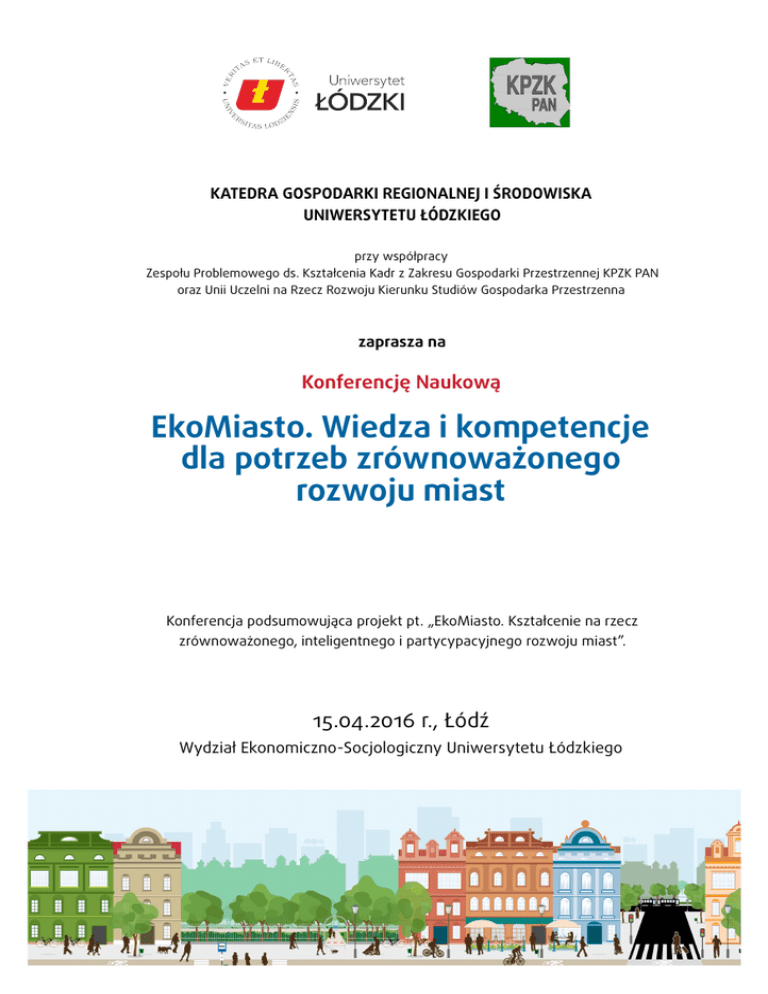 KATEDRA GOSPODARKI REGIONALNEJ I ŚRODOWISKA UNIWERSYTETU ŁÓDZKIEGO przy współpracy Zespołu Problemowego ds. Kształcenia Kadr z Zakresu Gospodarki Przestrzennej KPZK PAN oraz Unii Uczelni na Rzecz Rozwoju Kierunku Studiów Gospodarka Przestrzenna zaprasza na Konferencję Naukową EkoMiasto. Wiedza i kompetencje dla potrzeb zrównoważonego rozwoju miast Konferencja podsumowująca projekt pt. „EkoMiasto. Kształcenie na rzecz zrównoważonego, inteligentnego i partycypacyjnego rozwoju miast”. 15.04.2016 r., Łódź Wydział Ekonomiczno-Socjologiczny Uniwersytetu Łódzkiego Cel konferencji Złożoność i różnorodność systemów miejskich w obliczu przemian społecznogospodarczych oraz problemów ekologicznych jest dużym wyzwaniem dla planowania i zarządzania ich rozwojem. Karta Lipska wyznaczającą ścieżkę zrównoważonego rozwoju miast jako główne priorytety wskazuje dobrobyt gospodarczy, równowagę społeczną i zdrowe środowisko. Istotą zrównoważonego rozwoju miast jest integracja i synchronizacja działań wokół kluczowych obszarów takich jak jakość życia, bezpieczeństwo ekologiczne, gospodarka niskoemisyjna, zasobooszczędne gospodarowanie oraz adaptacja do zmian klimatu. Wyzwania te wymagają innowacyjnych rozwiązań w wymiarze gospodarczym, społecznym, przyrodniczym i instytucjonalnym. Stąd, na znaczeniu zyskuje nowoczesne i kompleksowe podejście do planowania i zarządzania rozwojem miast, szczególnie w kontekście powiązań i relacji pomiędzy sferą przyrodniczą, społeczną i gospodarczą. Wsparciem dla dynamicznych procesów zachodzących w mieście powinna być kadra menedżerska dysponująca interdyscyplinarną wiedzą, praktycznymi umiejętnościami oraz nowoczesnymi kompetencjami społecznymi. Istotnym warunkiem skuteczności kształcenia kadr spełniających te wymagania jest partnerstwo i współdziałanie wielu podmiotów. Konieczna jest zatem dyskusja na temat profesjonalizacji kadr zarządzających miastami z perspektywy wyzwań zrównoważonego rozwoju. Podstawowe bloki tematyczne wytyczające charakter i kierunek dyskusji: 1. Integracja, partycypacja, kreatywność w działaniu. Kształtowanie kompetencji menedżerów miejskich 2. Współpraca uczelni wyższych z podmiotami z otoczenia społeczno-gospodarczego w procesie kształcenia. 3. Kształtowanie postaw obywatelskich oraz społecznej odpowiedzialności w działaniu na rzecz rozwoju miast. 4. Luki i bariery w procesie kształcenia na rzecz zrównoważonego rozwoju miast. Rada naukowa • prof. zw. dr hab. Aleksandra Jewtuchowicz, Uniwersytet Łódzki, • prof. zw. dr hab. Tadeusz Markowski, Uniwersytet Łódzki, • prof. zw. dr hab. Tadeusz Kudłacz, Uniwersytet Ekonomiczny w Krakowie, • dr. hab. Artur Zaguła, Politechnika Łódzka, • dr hab., prof. nadzw. Paweł Churski, Uniwersytet im. Adama Mickiewicza w Poznaniu, • dr hab., prof. nadzw. Arnold Bernaciak, Wyższa Szkoła Bankowa w Poznaniu, • dr hab., prof. nadzw. Aleksandra Nowakowska, Uniwersytet Łódzki. Warunki uczestnictwa • Udział w konferencji jest bezpłatny. • Dojazd i zakwaterowanie na koszt własny uczestników. • Termin przyjmowania zgłoszeń: 29.02.2016 r. • Formularz zgłoszenia znajduje się na stronie internetowej: www.region.uni.lodz.pl/ekomiasto/ . • Termin akceptacji zgłoszeń: 11.03.2016 r. Sekretariat konferencji dr Agnieszka Rzeńca mgr Ewa Boryczka e-mail: [email protected] telefon / fax: (+48) 42 665 57 50 Katedra Gospodarki Regionalnej i Środowiska, Wydział Ekonomiczno-Socjologiczny, Uniwersytet Łódzki ul. Rewolucji 1905 r. nr 39, 90-214 Łódź Projekt „EkoMiasto” Katedra Gospodarki Regionalnej i Środowiska jest inicjatorem i koordynatorem projektu „EkoMiasto. Kształcenie na rzecz zrównoważonego, inteligentnego i partycypacyjnego rozwoju miast”. Celem projektu jest przygotowanie kompleksowej oferty dydaktycznej dla absolwentów szkół ponadgimnazjalnych, wychodzącej naprzeciw potrzebom planowania i kształtowania zrównoważonego, inteligentnego i partycypacyjnego rozwoju miast. Główne rezultaty projektu to: 1. Opracowanie innowacyjnego, modułowego programu kształcenia dla kierunku praktycznego „Ekonomia miasta zrównoważonego” (studia I stopnia, nabór od roku akademickiego 2016/2017). 2. Przygotowanie nowoczesnych materiałów dydaktycznych do kształcenia w trybie e-learningu. 3. Wydanie czterech komplementarnych podręczników tj.: • EkoMiasto#Środowisko • EkoMiasto#Społeczeństwo • EkoMiasto#Gospodarka • EkoMiasto#Zarządzanie 4. Organizacja warsztatów dla uczniów szkół ponadgimnazjalnych pt. „Zrównoważony rozwój miast - nowa filozofia planowania rozwoju miast”. Więcej informacji: www.region.uni.lodz.pl/ekomiasto/