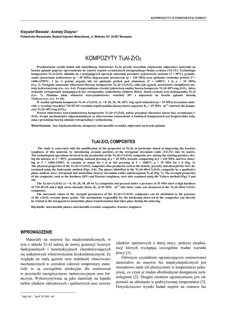 KOMPOZYTY Ti3Al-ZrO2