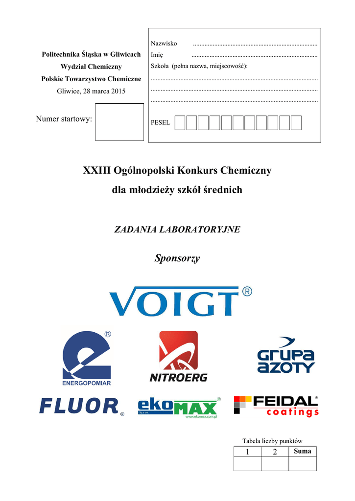 XXIII Ogólnopolski Konkurs Chemiczny dla młodzieży szkół średnich