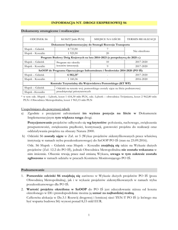 INFORMACJA NT. DROGI EKSPRESOWEJ S6 Dokumenty