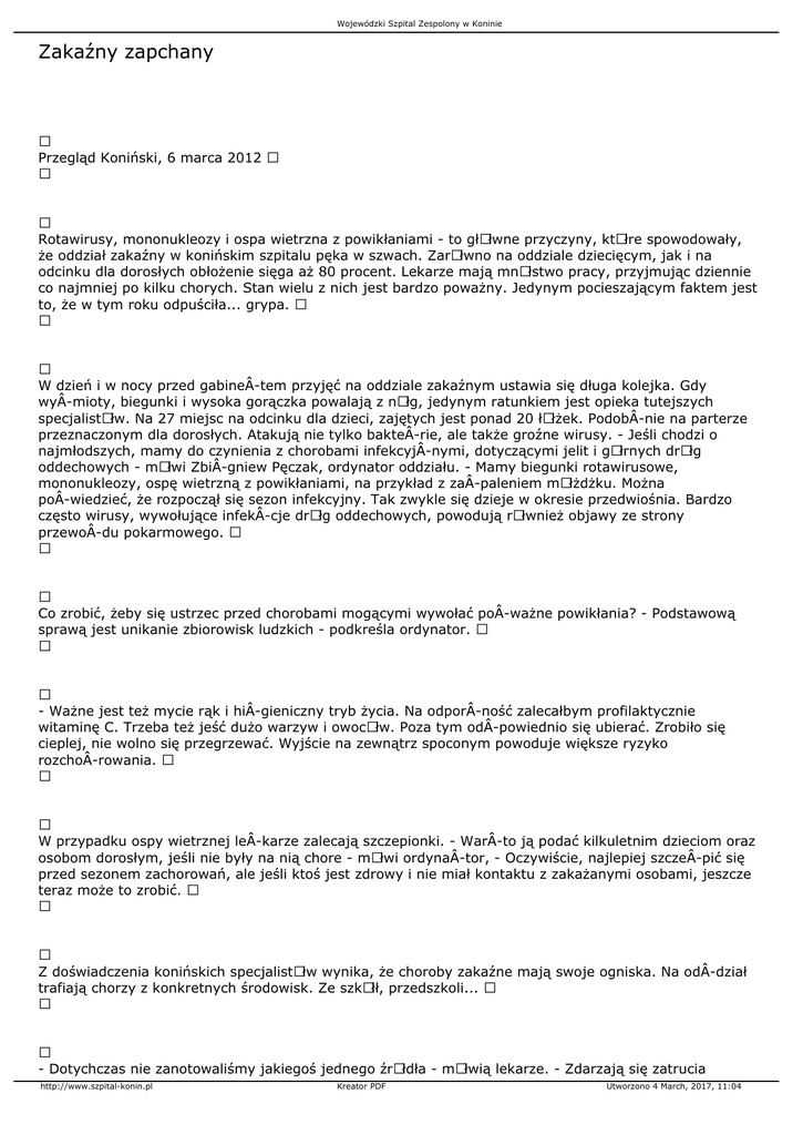 Zakaźny zapchany - Wojewódzki Szpital Zespolony w Koninie