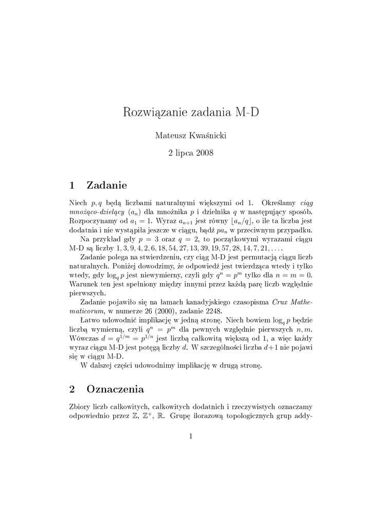 3 Formalna denicja ci¡gu M-D