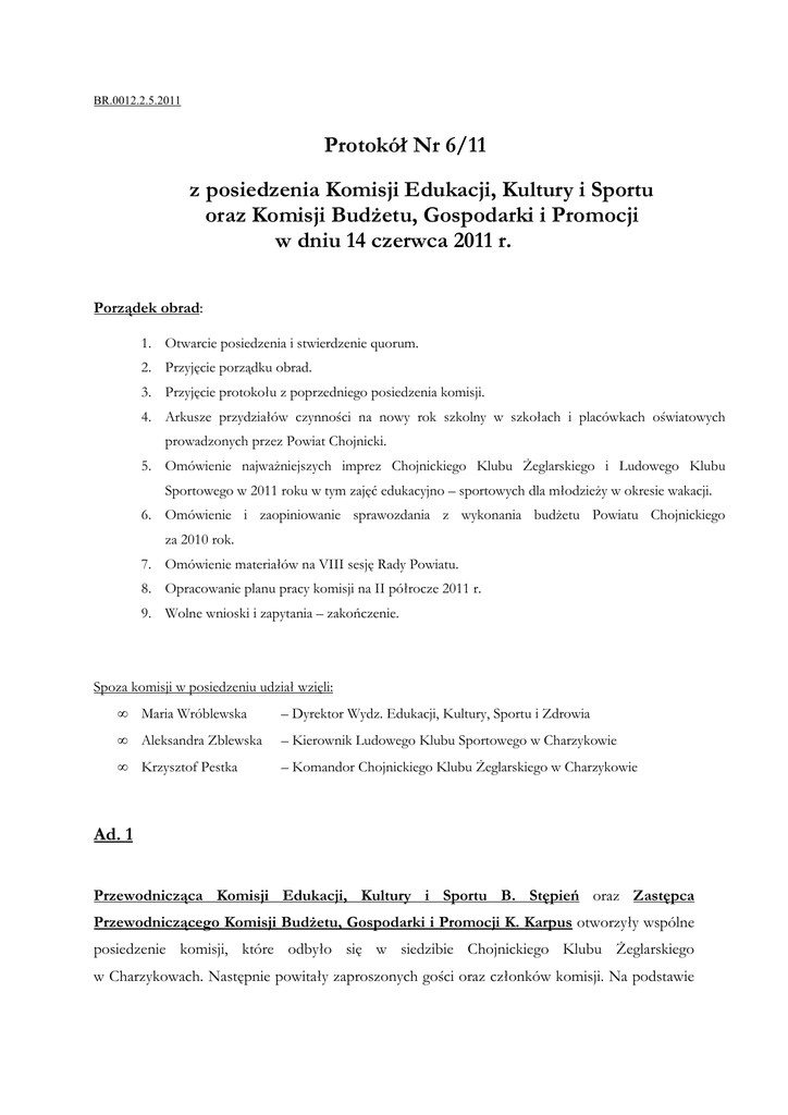 Protokół Nr 6/11 z posiedzenia Komisji Edukacji