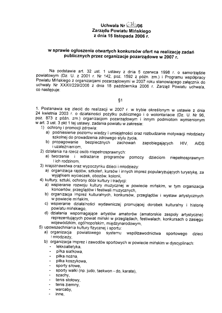 Uchwała Zarządu Powiatu Mińskiego 674/06 z