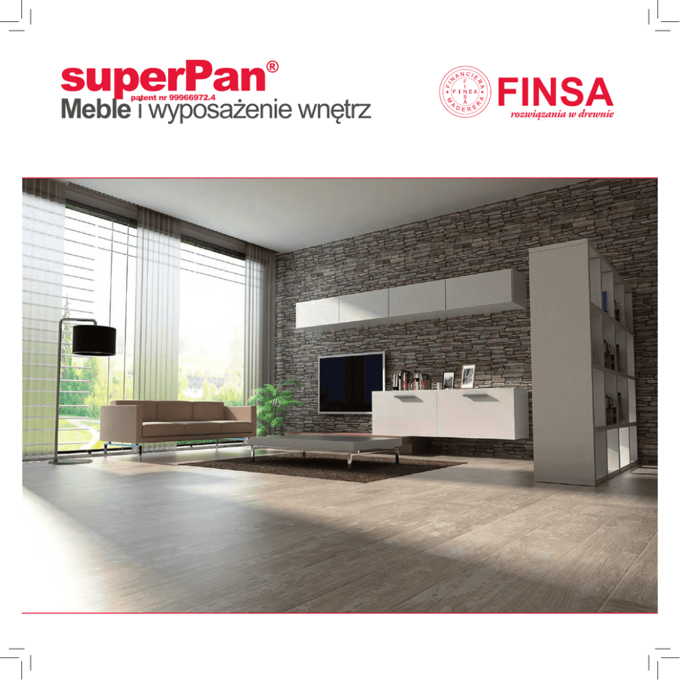 superPan ® Meble i wyposażenie wnętrz patent nr 99966972.4 rozwiązania w drewnie Finsa Środowisko Przejrzystość: ślad ekologiczny W roku 2011 firma FINSA stała się głównym producentem technicznych wyrobów z drewna na Półwyspie Iberyjskim, który uwzględnia w swoich produktach deklarację środowiskową (EPD). Deklaracja EPD jest narzędziem służącym do przesyłania jasnych i jawnych informacji, dotyczących wpływu określonego produktu na środowisko podczas wszystkich etapów cyklu ich życia. W przypadku naszych produktów należy potwierdzić, że drewno jest materiałem umożliwiającym ekologiczne pozyskiwanie gazów podczas całego procesu produkcyjnego. 1 m3 płyty Fibranor 1 m3 płyty Fimapan = - 818 kg CO2 = - 910 kg CO2 Akredytacje LEED: Płyta przyjazna dla środowiska Meble z SuperPan umożliwiają uzyskanie akredytacji LEED na różnych obszarach: • Materiały • • • • 2 superPan wewnętrzne z wtórnych Lokalne materiały Materiały szybko odnawialne Drewno z certyfikatami Materiały niskoemisyjne surowców „Płyta przyjazna dla środowiska to inteligentne rozwiązanie.” Certyfikaty: drewno pochodzące z lasów przyjaznych dla środowiska Nadzór łańcucha dostaw potwierdza drogę przetwarzania podstawowych surowców - od pozyskiwania drewna w lesie do dostarczenia go konsumentowi / klientowi, włączając w to wszystkie etapy tego procesu, gwarantując tym samym klientowi, że nabywane przez niego produkty są wytwarzane z materiałów pochodzących z lasów uprawianych w sposób przyjazny dla środowiska. Wyrazem tej gwarancji są certyfikaty PEFC i FSC, które dotyczą procesu produkcji i wprowadzania do obrotu produktów wytwarzanych z drewna. 3 SuperPan meble i wyposażenie wnętrz Prezentacja 06 ZASTOSOWANIA Meble Wystrój wnętrz Stoiska i standy wystawowe Komponenty Drzwi 08 Lakierowanie 12 Nadruki / malowanie Powłoki melaminowe Pokrywanie Postforming Zewnętrzne powierzchnie poddane obróbce mechanicznej Produkty do gięcia 4 superPan 08 09 10 11 14 16 17 17 DOSTĘPNE GAMY PRODUKTÓW SuperPan Gama Opakowanie SuperPan Decor SuperPan Natur SuperPan Star 18 20 22 24 KARTY TECHNICZNE / OGÓLNE ZALECENIA / NORMY I CERTYFIKATY 25 5 Nowe czasy Nowe rozwiązania superPan ® patent nº 99966972.4 Dzięki swojej uniwersalności łatwości dostosowania do wielu zastosowań, deska SuperPan jest obecnie wybierana przez wielu producentów mebli i dekoratorów wnętrz. Opisywana nowa generacja technicznych wyrobów z drewna zapewnia nie tylko wysokie standardy jakości, ale także optymalizację zasobów oraz wysoką rentowność. Produkt ekskluzywny i opatentowany Meble wytwarzane z SuperPan oferują klientowi konkurencyjną przewagę względem innych, tradycyjnych rozwiązań: gwarancja materiału na wysokim poziomie jakości oraz funkcji. Oznacza to także trwałość gotowego produktu. Nowa generacja technicznych produktów drewnianych produkowanych przez firmę Finsa w procesie ciągłego prasowania. Innowacyjny i ekskluzywny produkt chroniony patentem nr 99966972.4 (europejskie biuro patentowe) Specjalna struktura SuperPan to innowacyjna płyta o unikalnym składzie, który różni się od składu pozostałych, standardowych materiałów dostępnych na rynku. Dzięki jej cechom fizycznym i unikalnym właściwościom mechanicznym deska SuperPan stanowi idealne rozwiązanie dla wielu zastosowań w sektorze meblarskim i dekoracyjnym. 6 superPan Włókna drzewne Wióry „Techniczne wyroby z drewna druga generacja: koszty i właściwości techniczne połączone w jednej, innowacyjnej płycie." Kg Perfekcja cięcia Ponadto umożliwia realizację skutecznych i opłacalnych rozwiązań, spełniając jednocześnie konieczne wymagania. Zewnętrzna powłoka zapewnia gładką i zbitą powierzchnię z włókna idealnego do bezpośredniego nanoszenia każdego rodzaju powłok lub farb. Doskonała jakość wykończeń. Doskonałe zachowanie materiału przy montowaniu śrub, gwoździ i elementów ze stali. Dzięki udoskonalonym właściwościom fizyczno-mechanicznym płyta SuperPan oferuje doskonałe rozwiązanie w najbardziej wymagających warunkach obciążenia. Podwyższona odporność na uderzenia. Umożliwia to unikanie rys, deformacji lub wad powierzchniowych. Niska absorpcja powierzchniowa dzięki właściwościom zewnętrznej powłoki z włókien o dużej gęstości. 7 Superpan Zastosowania Meble Gama produktów SuperPan oferuje wiele różnych rozwiązań w procesie wytwarzania mebli. Dzięki swoim unikalnym właściwościom wysokiej jakości, opisywana ekskluzywna płyta daje przedsiębiorcom sektora meblarskiego możliwość uzyskania udoskonalonych rozwiązań technicznych, mających na celu podniesienie wydajności procesów produkcyjnych oraz uzyskanie możliwie największej rentowności. Wystrój wnętrz Płyta SuperPan otwiera nowe perspektywy i szeroki zakres kreatywnych możliwości związanych z wystrojem wnętrz, zarówno w surowej postaci przeznaczonej do późniejszego procesu malowania lub pokrywania powłoką, jak i w postaci melaminowanej lub poddanej obróbce. 8 superPan Szczególne właściwości oraz przede wszystkim duże zróżnicowanie płyt SuperPan czyni je produktem polecanym w sektorze dekoracji i wyposażenia wnętrz. Po odkryciu ich ogromnego potencjału można popuścić wodze fantazji i kreatywności, korzystając z nieskończonych możliwości, jakie może przynieść ten innowacyjny produkt. MEBLE I WYPOSAŻENIE WNĘTRZ Stoiska i standy wystawowe Powierzchnia płyty SuperPan, nadająca się zarówno do bezpośredniego malowania, lakierowania, jak i pokrywania powłokami, umożliwia rozwijanie projektów o unikalnej jakości, umożliwiając jednocześnie istotną oszczędność kosztów względem innych tradycyjnych rozwiązań. Z drugiej strony wyższy poziom właściwości płyty SuperPan stanowi kluczowy argument w kwestii konstrukcyjnego zastosowania produktu (antresole, korytarze, posadzki, panele itp.) 9 SuperP