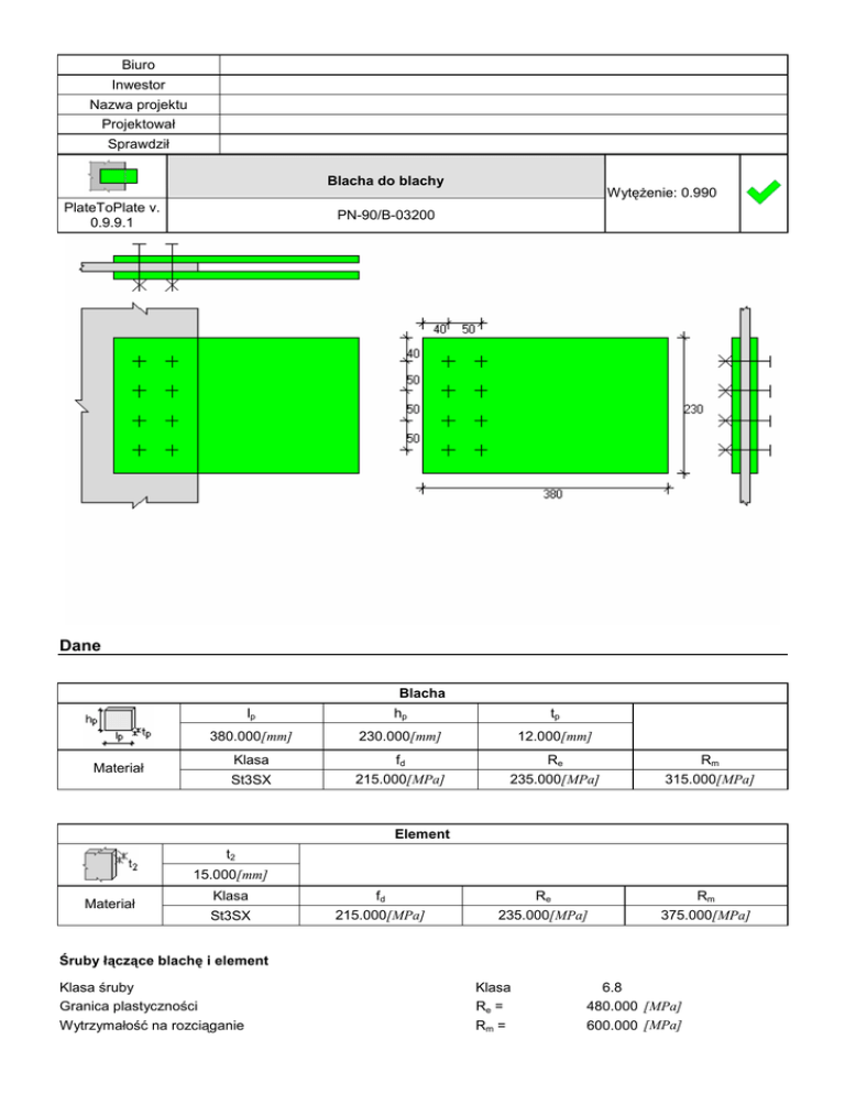 Przykład pełnej notki obliczeniowej wg PN-90/B-03200 w