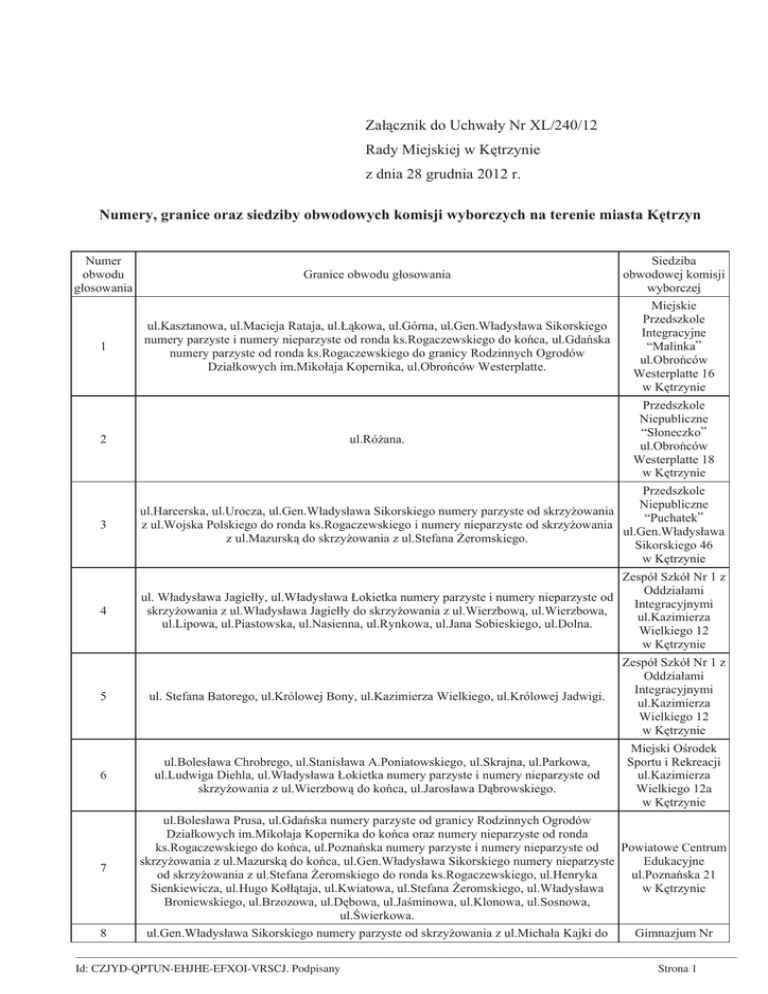 Załącznik do Uchwały Nr XL/240/12 Rady Miejskiej w Kętrzynie z
