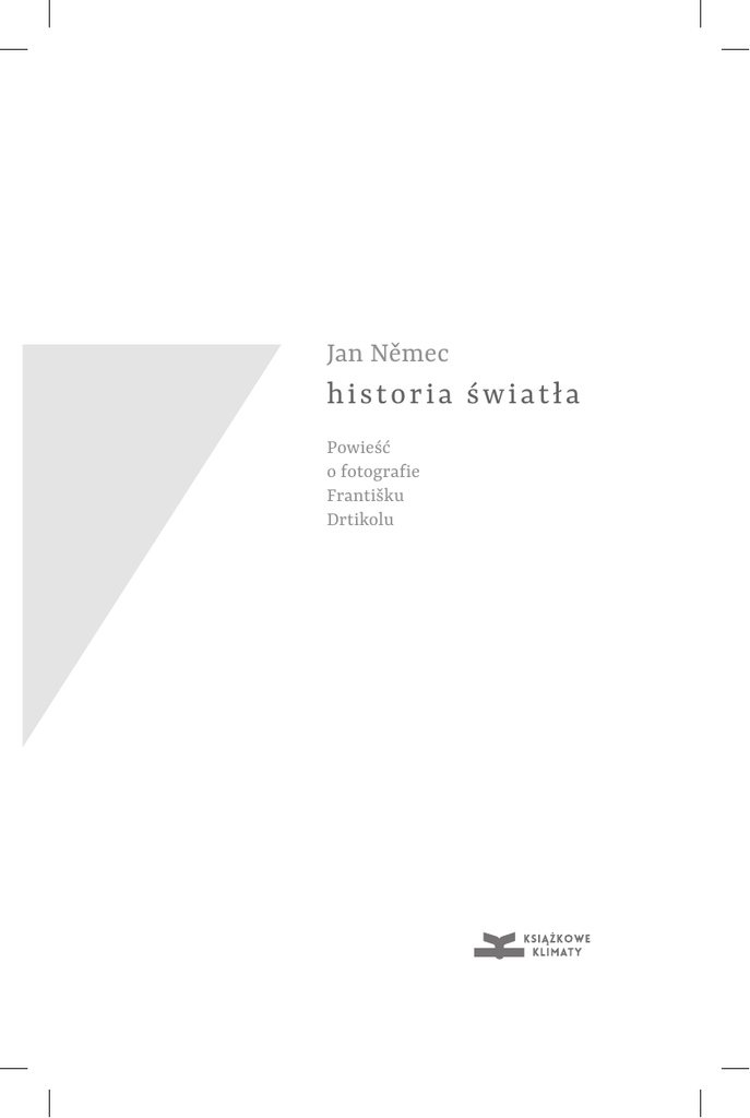 Jan Němec h ist oria św i a tł a Powieść o fotografie Františku Drtikolu Fot. Maciej Przepiórka Katarzy n a Bańka Z wykształcenia bohemistka i fotografka. Mieszka w Warszawie. Od wielu lat pracuje jako tłumaczka oraz menedżerka kultury. Historia światła to jej pierwsze tłumaczenie literackie. Pasjonuje się ceramiką. Jan Němec hi s t o ri a ś w i at ła Powieść o fotografie Františku Drtikolu Przełożyła Katarzyna Bańka Wrocław 2017 Tytuł oryginału czeskiego: Dějiny světla Redakcja: Małgorzata Pasicka-Siekanka Korekta: Małgorzata Wiśniowska-Deluga, Agnieszka Radtke Projekt okładki: Magdalena Kocińska | O!Studio, o-studio-dtp.com Projekt układu typograficznego: Wioletta Kowalska | Violet Design, violetdesign.pl © Jan Němec, 2013 © Host – vydavatelství, s.r.o., 2013 © for the Polish translation by Katarzyna Bańka, 2016 © for the Polish edition by Książkowe Klimaty Tłumaczenie niniejszej publikacji zostało dofinansowane przez Ministerstwo Kultury Republiki Czeskiej Książkę wydrukowano na papierze Antalis, Ecco book 75 Cream vol. 2.0 70g/m2 ISBN: 978-83-64887-32-1 moim nauczycielom Miłuję jedną rzecz, a nie wiem, czym jest wcale: Dlatego zaś, że nie wiem, tym chętniej ją wybrałem1. ANGELUS SILESIUS 1 Angelus Silesius, Cherubinowy wędrowiec, Opole–Warszawa 2003, s. 23 [o ile nie zaznaczono inaczej, przypisy pochodzą od tłumaczki]. Do diabła z pierwszą osobą. SAMUEL BECKETT PROLOG Dzień przed tym, kiedy to się stanie, siedzisz przy stole w górniczej chałupie na obrzeżach Przybramia. Po drugiej stronie izby stoi biały kredens z obtłuczonym fajansem i stara malowana szafa. Na ścianie wisi święty obrazek, błogosławieństwo i drewniany krzyżyk z dwóch deszczułek przewiązanych zardzewiałym drutem. Płachty prania rozciągnięte na sznurze nad piecem przypominają raczej szmaty do podłogi, choć podłoga potrzebuje przede wszystkim łatania: spod desek słychać chrobot myszy i innych tworów kryjących się w szczelinach, zakamarkach i kątach. Na oparciu krzesła wisi przepocony roboczy szachciok, a na nim poplamiona skórzana łata. Patrzycie z Hynkiem na śpiącego, który te rzeczy tam odłożył, i w skupieniu przesyłacie mu polecenie, niech się w końcu obudzi. Przewraca się na sienniku, z którego wystają pociemniałe źdźbła, i ciężko oddycha. Hynek cicho gwiżdże, ale jego tato ani drgnie. 11 12 Niedokończony model kopalni piętrzy się na półce na wyciągnięcie ręki, jednak kiedy jesteście sami, nie wolno wam go nawet dotknąć. Hynek po chwili nie może już wytrzymać, sięga bodaj po dwie gliniane figurki, po dwóch z lekka rozpadających się odmieńców, którzy poniewierają się z boku. Jednego podsuwa tobie, ostrożnie chwytasz figurkę pomiędzy kciuk i palec wskazujący i nachylasz się w stronę Hynka: Byłeś kiedy w srebrnym mieście?, szepczesz jej ustami. Pod srebrną bramą? Prowadzi tam tylko jedna sztolnia, a tej pilnuje święty Prokop z diabłem na łańcuchu. Ale ja znam hasło – szepcze Hynek, trzymając w rękach drugiego mizerotę. To powiedz. Cosi tam szeptacie, łobuzy?, odzywa się głos z rogu pokoju. A Hynek aż kraśnieje z radości: Ojcze, już nie śpicie? Do pieruna jasnego, toć tu się da?, mężczyzna siada na łóżku. A synek sklepikarza znów u nas? – Drapie się żylastymi rękami po kosmatej piersi. – No, każda ręka dobra, ale obiad masz u was… Hynek biegnie po konew z wodą, a ojciec obryzguje twarz tak gwałtownie, że zalewa nawet niebieloną ścianę za swoimi plecami. Przeciąga się i z wysiłkiem podchodzi do stołu, podnosi szachciok z krzesła i rzuca go na łóżko. Siada i rozgląda się wokół, jakby te sprzęty widział pierwszy raz albo jakby wcześniej musiał upewnić się, że wszystko jest na swoim miejscu. Jest, wszystko trwa w mroku i od- wzajemnia spojrzenie zaspanego gospodarza: obrazek Bogurodzicy, wyszywanka, garnek i kalendarz, przy jednej stołowej nodze przycupnął śpiący kot, przy drugiej trochę mniej wynędzniała bryła gliny. Po chwili tato Hynka podnosi glinę, stawia ją na porysowanym blacie stołu i zwilża wodą. Wszyscy ludzie z gliny powstali i z gliny stworzony był Adam, recytuje. Wykonuje znak krzyża, zapala lampę oliwną i dodaje: Trzeba ich jeszcze tak z dziesięciu, dwunastu. Potem idzie wysikać się na dwór. W izbie panuje mrok, choć dopiero wybiło południe, okna są małe, ale ważniejsze od światła jest zachowanie ciepła. Glina łatwo poddaje się palcom, jest mokra, czasami przyciąga odblask płomienia, który ty starasz się jak najszybciej wgnieść do środka. Formowanie figurek idzie ci nieco lepiej niż Hynkowi, bierzesz do ręki kawałek gliny, w dłoniach toczysz z niego wałeczek, z którym później pracujesz. Tato Hynka czasami cię naprowadza i nawet po tym można poznać, że bierze cię za tego zdolniejszego, po Hynku ciągle coś musi poprawiać i właściwie nic do niego nie mówi. Pracujesz małym nożykiem o sfatygowanej rękojeści, ostrzem oddzielasz ręce od tułowia i rozdzielasz nogi, jeden z hawierzy ma stać w szerokim rozkroku, aby porządnie mógł wbić się w skałę, to rębacz; dozorca z założonymi rękami stoi zwyczajnie obok, jeszcze kolejny czeka aż mu nałożą wózek, to wozak o umięśnionych nogach. Jak szkoła?, pyta ojciec Hynka. Fráňo siedział w kozie. 13 14 Nie pytam o niego, ale o ciebie. To było niesprawiedliwe, ciągnie po swojemu Hynek. Hynek umiał, mówisz i starasz się odwrócić wzrok od zdeformowanego kciuka z odkształconym paznokciem, spod którego ojciec Hynka właśnie wydłubuje brud. W końcu model kopalni wędruje z półki na stół. Klękasz na krześle, żeby widzieć lepiej, pochylasz się, a rant stołu wciska ci się między żebra. Model ma kilka pięter i w sumie tęgo ponad metr. Wygląda jak jakaś podziurawiona góra albo oberwane osie gniazdo, żeby zobaczyć, że faktycznie wznosi się tu model kopalni