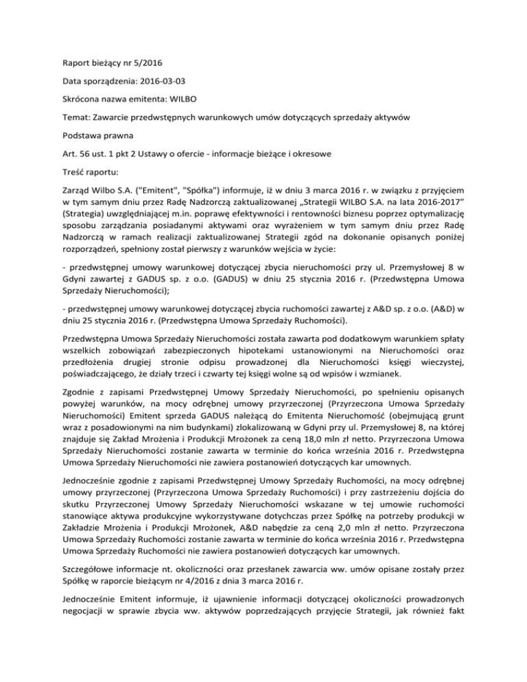 Temat: Zawarcie przedwstępnych warunkowych umów dotyczących sprzedaży aktywów