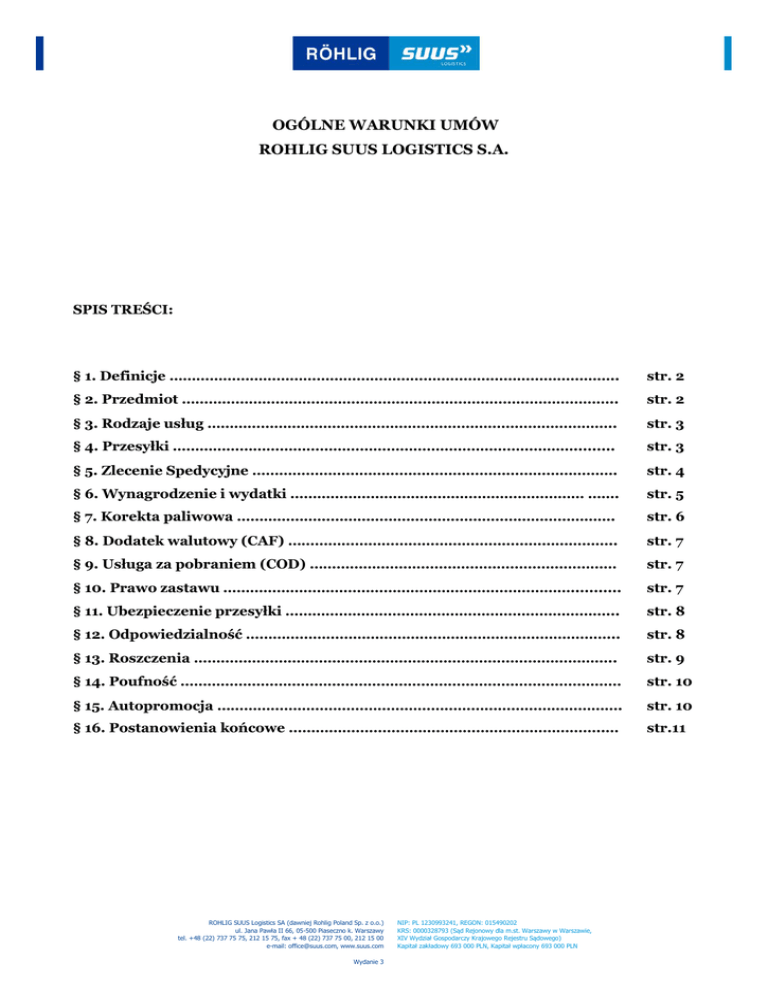 OGÓLNE WARUNKI UMÓW ROHLIG SUUS LOGISTICS S.A.