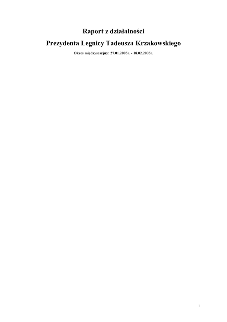Raport z działalności Prezydenta Legnicy Tadeusza Krzakowskiego