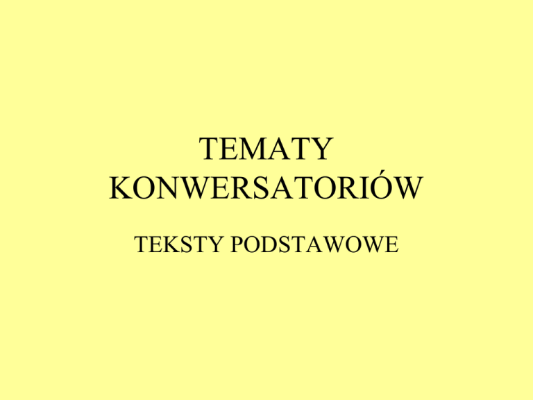 TEMATY KONWERSATORIÓW TEKSTY PODSTAWOWE Konwersatorium 2. marca Warunki życia na Ziemi • Temat prezentacji: Robert M. Hazen, „Matecznik minerałów”. Świat Nauki 4, 2010, 62-70. • Temat prezentacji: Sasslelov D.P., Palencia D., „Planety, które mogą być domem”. Świat Nauki 9, 2010: 26-33. Konwersatorium 9. marca Początki życia • Temat prezentacji 1: „Hipotezy o powstaniu życia – heterotroficzna (‘zimna zupa’)” – Tekst: Weiner J., „Hipotezy o powstaniu i wczesnej ewolucji życia”. Kosmos 58, 2009, 3-4: 501-528 [fragment] • Temat prezentacji 2: „Hipotezy o powstaniu zycia – autotroficzna (‘gorąca pizza’)” – Tekst: Weiner J., „Hipotezy o powstaniu i wczesnej ewolucji życia”. Kosmos 58, 2009, 3-4: 501-528 [inny fragment] Konwersatorium 16. marca Źródła hydrotermalne, życie w głębi Ziemi • Temat prezentacji 1: Źródła hydrotermalne – Tekst: Migaszewski Z.M., Gałuszka A. „Ekosystemy smokersów”. W: Podstawy geochemii środowiska, Wyd. N.-T., 2007 • Temat prezentacji 2: Życie w głębi Ziemi – Tekst: Fredrickson J.K., Onstott T.C., „Życie w głębi Ziemi”. Świat Nauki 12, 1996: 26-31 Konwersatorium 23. marca Metan w biosferze • Temat prezentacji 1: „Dekompozycja beztlenowa i metanogeneza” Różański Jakub – Tekst: Paul E.A., Clark F.E., „Mikrobiologia i biochemia gleb”. Wyd. UMCS, 2000. Fragment rozdz. 7: 211-215. • Temat prezentacji 2: „Klatraty metanu.” Katarzyna Dykas – Tekst: L. Margonelli, „Niewygodny Lód”. Świat Nauki 12, 2014: 46-53. – Tekst: Siess E. i in., „Płonący lód”. Świat Nauki 2, 2000: 3947. Konwersatorium 30. marca Strategie metaboliczne • Temat prezentacji 1: „Życie bez tlenu” – Postgate J. „Granice życia”. Cis, 1997. Rozdz. 7. „Życie bez tlenu”: 93-118. • Temat prezentacji 2: „Metabolizm siarki, żelaza i azotu” – Postgate J. „Granice życia”. Cis, 1997. Rozdz. 8. „Życie minerałami”: 119-137. Konwersatorium 6. kwietnia Azot w biosferze • Temat prezentacji 1: „Organizmy wiążące azot” – Tekst: Paul E.A., Clark F.E., „Mikrobiologia i biochemia gleb”. Wyd. UMCS, 2000. Fragment rozdz. 10: 264-279. • Temat prezentacji 2: „Wpływ człowieka na obieg azotu” – Tekst: Townsend A.R., Howarth R.W., „Zdradziecki azot.”. Świat Nauki 3, 2010: 74-81. – Tekst: Smil V., „Ludzkość a obieg azotu”. Świat Nauki 9, 1997: 62-67. Konwersatorium 13. kwietnia Fosfor w biosferze • Temat prezentacji 1: „Biogeny: problem z fosforem” – Tekst: Vaccari D.A., „Fosforyzujące widmo”. Świat Nauki 7, 2009: 74-79. Konwersatorium 20. kwietnia Inne biogeny w biosferze • Temat prezentacji 1: „Biogeny: Żelazo a wiązanie dwutlenku węgla” – Tekst: Falkowski P.G., „Niewidzialny oceaniczny las”. Świat Nauki 10, 2002: 50-57. • Temat prezentacji 2:”Geologiczna rola bakterii” – Tekst: Kunicki-Goldfinger W.J.H., „Życie bakterii”, PWN, 1998, fragment rozdz. 12 „Bakterie w biosferze”: 430-434. – Tekst: Ostrowski M., Skłodowska A., „Małe bakterie, wielka miedź”, Sci&Art, 1996, str. 64-71. Konwersatorium 27. kwietnia Siarka w biosferze • Temat prezentacji 1: „Bakterie siarkowe” – Tekst: Błaszczyk M.K.: „Mikrobiologia środowisk”. PWN 2010. rozdz. 5.6. „Obieg siarki w przyrodzie”:165-173. • Temat prezentacji 2: „DMS w oceanie” – Tekst: Andrews J.E. i in. „Wprowadzenie do chemii środowiska”. WNiT, 2000., „Rozdz. 5.4.3. Obieg siarki a klimat. ”: 214-219. Konwersatorium 4. maja Biogeochemia na lądzie • Temat prezentacji 1: „Ekosystem tundry a zmiany klimatu”. – Tekst: Anthony K.W., "Gorące tchnienie Ziemi". Świat Nauki 1, 2010: 64-71. – Tekst: Sturm M. i in.,"Roztopy na Północy". Świat Nauki 11, 2003: 56-63. • Temat prezentacji 2: „Badania zlewniowe ekosystemu leśnego” – Tekst: Grodzińska K. Laskowski R. (Red.) „Ocena stanu środowiska i procesów zachodzących w zlewni potoku Ratanica...”, Metody i Wyniki pomiarów: 11-17, 54-60. Konwersatorium 11. maja Biogeochemia w wodach • Temat prezentacji 1: „Konsekwencje zmiany pH oceanów” – Tekst: Doney S.C., "Groźne kwaśne oceany". Świat Nauki 5, 2006: 64-71. – Tekst: Hardt M.J., Safina C., „Kwaśny smak zagłady”. Świat Nauki 9, 2010: 54-61. • Temat prezentacji 2: „Wymiana gazowa w głębokich jeziorach afrykańskich” – Tekst: Andrews J.E. i in. "Wprowadzenie do chemii środowiska". WNiT, 2000., Fragment rozdz. 3.7. "Chemia wód kontynentalnych". 111-117. – Tekst: Weiner J., „Życie i ewolucja biosfery”, rozdz. 9.2. Jezioro. PWN, 2003, 207-219. Konwersatorium 18. maja Bilans węgla i zmiany globalne • Temat prezentacji 1: „Biogeochemiczne przyczyny zmian klimatu” – Tekst: Ruddiman W.F., „Kto zmienił klimat?”. Świat Nauki 4, 2005: 38-45 – Tekst: Wallschleger S.D., Strahl M., „Klimat: eksperyment kontrolowany”, Świat Nauki 4, 2010: 76-81. • Temat prezentacji 2: „Ziemia - śnieżka” – Tekst: Arnold C., „Kiedy Ziemia była śnieżną kulą”. Świat Nauki 3, 2011: 16. – Tekst: Hoffman P.F., Schrag D.P., „Ziemia jak kula śniegu”. Świat Nauki 3, 2000: 70-77 Konwersatorium 25. maja Nauka i mity - Gaja i Medea • Temat prezentacji 1: „Hipoteza Gai” – Tekst: Weiner J. Posłowie. W: J. Lovelock: Gaja. Nowe spojrzenie na życie na Ziemi. Prószyński i S-ka, 2003: 165-174 • Temat prezentacji 2: „Hipoteza Medei” – Tekst: Ward P. „Hipoteza Medei. Czy życie na Ziemi zmierza do samounicestwienia?”. Prószyński i S-ka, 2010. Rozdział 3: „Dwie hipotezy dotyczące natury życia na Ziemi”: 50-80. KALENDARZ KONWERSATORIÓW Numer kolumny z nazwiskami odpowiada numerowi tematu referatu OCHRONA ŚRODOWISKA, środa, sala 2.0.6, godzina 9:30 DATA TEMAT KONWERSATORIUM 1 2 1 24.02 Organizacja 2 2.03 Warunki życia na Ziemi Forycka Wioletta Tarnowski Bartek 3 9.03 Początki życia na Ziemi Orkisz Joanna Zają