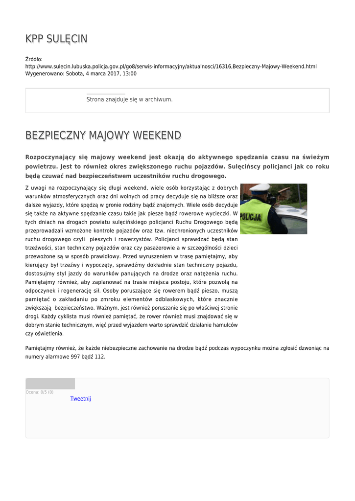 KPP SULĘCIN BEZPIECZNY MAJOWY WEEKEND
