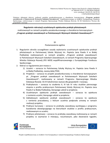 Regulamin rekrutacji uczelnianych opiekunów praktyk pilotażowych