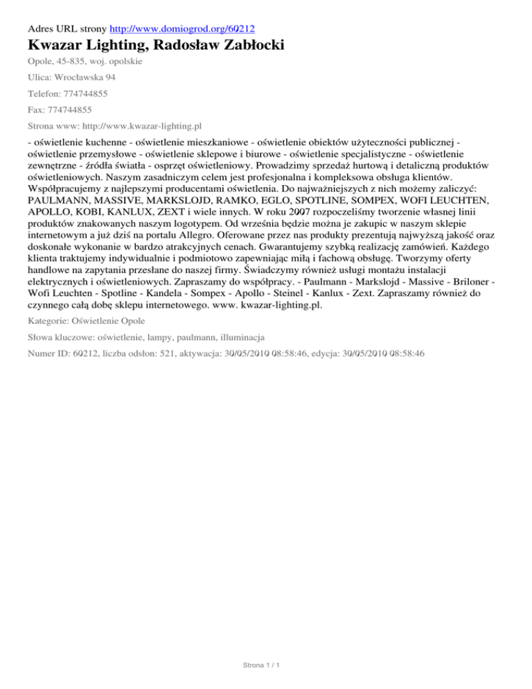 Kwazar Lighting, Radoslaw Zablocki, Opole, Wroclawska 94