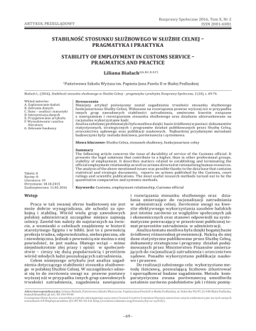 STABILNOŚĆ STOSUNKU SŁUŻBOWEGO W SŁUŻBIE CELNEJ