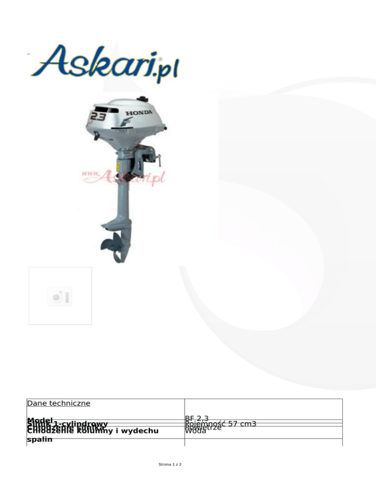 Dane techniczne Model BF 2,3 Silnik 1-cylindrowy