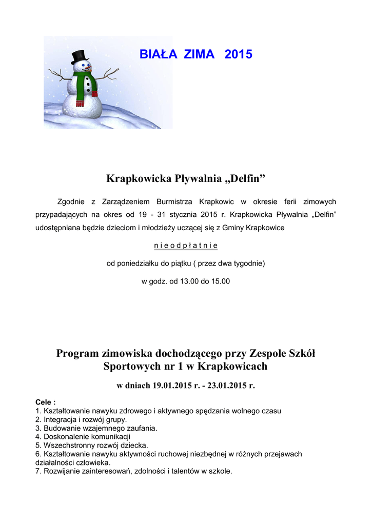 BIAŁA ZIMA 2015 Krapkowicka Pływalnia „Delfin”