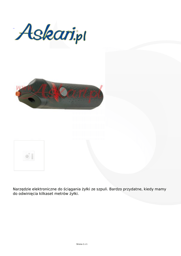 Narzędzie elektroniczne do ściągania żyłki ze szpuli. Bardzo przydatne, kiedy mamy do odwinięcia kilkaset metrów żyłki. Strona 1 z 1