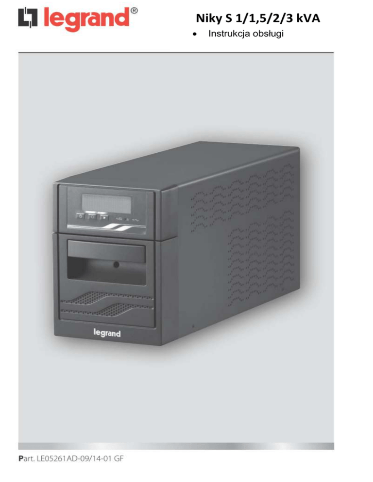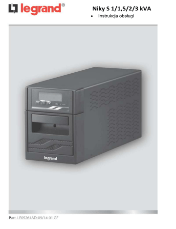 Niky S 1/1,5/2/3 kVA Instrukcja obsługi Spis treści 1 Wprowadzenie 3 2 Warunki użytkowania 3 3 Instalacja 4 4 Sygnały i kontrolki 4 5 Przeciążenie i samo-wyłączenie 5 6 Właściwości 6 7 Wymiana baterii 7 8 Stany pracy 7 9 Dane techniczne 8 1 Wprowadzenie Niniejszy dokument zawiera instrukcje użytkowania zasilaczy UPS model Niky S 1-1,5-2-3kVA. W celu poprawnego używania zasilacza UPS zaleca się zapoznać z niniejszą instrukcją obsługi w całości. UPS Niky został stworzony do użytku w celach prywatnych lub przemysłowych, nie jest zgodny ze standardami urządzeń elektrycznych stosowanych w medycynie. 2 Warunki użytkowania • UPS NIKY S został zaprojektowany, aby zasilać urządzenia przetwarzania danych. Zastosowane obciążenie nie może przekroczyć wartości wskazanej na tylnej etykiecie Twojego UPS. • Przycisk ON/OFF Twojego UPS nie izoluje elektrycznie części wewnętrznych. Aby odizolować Twój UPS odłącz go od gniazda sieci zasilania, • Nie otwierać obudowy UPS, gdyż wewnątrz mogą znajdować się części pod niebezpiecznie wysokim napięciem - nawet, gdy wtyczka sieci jest odłączona; wewnątrz nie ma części, które użytkownik może samodzielnie naprawić. • UPS NIKY S został zaprojektowany do pracy w zamkniętych, czystych pomieszczeniach, gdzie nie ma łatwopalnych płynów lub substancji żrących i gdzie nie jest zbyt wilgotno. • Nie należy umieszczać blisko urządzeń generujących mocne pole elektromagnetyczne i/lub blisko urządzeń, które są czułe na pole elektromagnetyczne (silniki, napędy dyskietek, głośniki, adaptery, monitory, video, itp.) • Nie wylewać jakichkolwiek płynów na UPS lub wewnątrz UPS. • Nie umieszczać UPS w wilgotnym środowisku lub blisko płynów, takich jak woda, roztwory chemiczne lub rozpuszczalniki itp. • Nie wystawiać UPS na bezpośrednie słońce lub na działanie źródeł ciepła. • Utrzymywać otwory wentylacyjne w czystości, aby efektywnie rozpraszać ciepło wytwarzane przez UPS. • Używać kabla zasilającego z uziemieniem do podłączania UPS do źródła zasilania. • Nie podłączać drukarek laserowych do UPS ze względu na ich duży prąd rozruchowy. • Nie podłączać domowych urządzeń elektrycznych, takich jak suszarka do włosów, urządzeń klimatyzacji lub lodówki do gniazd UPS. 3 Instalacja • • • • • • • • Wyjmij UPS z opakowania. Upewnij się, że napięcie zasilania sieci jest identyczne z wartością napięcia. znamionowego która znajduje się na tabliczce znamionowej umieszczonej z tyłu zasilacza. Włącz UPS przyciskiem ON/OFF aby sprawdzić czy działa prawidłowo (zielona dioda LED oznacza poprawną pracę). Wyłącz UPS przyciskiem ON/OFF, poczekaj aż dioda LED się wyłączy. Po wyłączeniu UPS podłącz kabel zasilający do gniazda wejściowego UPS znajdującego się po prawej stronie zasilacza. Włącz UPS i sprawdź czy pracuje prawidłowo z zasilania sieciowego – zielona dioda LED będzie o tym sygnalizować. Przed użyciem pozostaw UPS na 8 godzin w celu pełnego naładowania baterii. UPS może być używany nawet gdy nie jest w pełni naładowany, jednak czas trwania takiej pracy będzie proporcjonalnie krótszy od pracy przy pełnym naładowaniu. UWAGA! Podczas podłączania kabla zasilającego odbiory z UPS, nie należy używać dłuższego połączenia niż 10 metrów OSTRZEŻENIE! Nigdy nie należy odłączać wtyczki zasilania 230V podczas pracy UPS, ponieważ przerywa to połączenie zasilacza jak i podłączonych do niego urządzeń 4 Sygnały i kontrolki Sygnały świetlne Kolor diody LED znajdującej się na panelu przednim oznacza: • Zielona dioda ciągła - prawidłowe zasilanie z sieci i ładowanie baterii. • Zielona dioda miga co 3 sekundy – praca bateryjna. • Zielona dioda miga co 0.5 sekundy – stan bliski rozładowania baterii. • Zielona/czerwona dioda miga naprzemiennie – test lub restart po wyczerpaniu baterii. • Czerwona ciągła – awaria baterii lub przeciążenie. Sygnały akustyczne • Przerywany dźwięk co 3 sekundy – normalna praca bateryjna . • Przerywany dźwięk co 0.5 sekundy – stan bliski rozładowania baterii. • Ciągły dźwięk - awaria lub przeciążenie. 4 5 Przeciążenie i samo-wyłączenie Twój UPS jest wyposażony w system do pomiaru mocy dostarczonej na gniazda wyjściowe; gdy przekracza ona ustawiony próg, to zabezpieczenie i odpowiednie sygnały zostaną aktywowane; wyłączenie jest automatyczne, z opóźnieniem odpowiednim do stopnia przeciążenia. W trybie zasilania sieciowego zapali się zielona dioda LED. Jeśli przeciążenie wynosi 100% ± 10%; to UPS wyłączy się po 5 minutach i przejdzie do trybu błędu. Jeśli przeciążenie wynosi 110% ± 10%; UPS wyłączy się bezzwłocznie i przejdzie do trybu błędu. W trybie akumulatorowym zapali się czerwona dioda LED. Jeśli przeciążenie wynosi 100% ± 10%; to UPS wyłączy się po 5 sekundach i przejdzie do trybu błędu. Jeśli przeciążenie wynosi 110% ± 10%; UPS wyłączy się bezzwłocznie i przejdzie do trybu błędu. 6 Właściwości Autodiagnostyka Automatyczny test jest wykonywany za każdym razem, gdy UPS jest włączany, aby zapewnić pewne działanie. Zabezpieczenie akumulatorów Zabezpieczenie akumulatorów: przy włączonym zasilaniu z sieci, należy nacisnąć przycisk ON przez przynajmniej 3 sekundy aby wykonać test akumulatorów; jeśli akumulatory pracują prawidłowo, UPS przełączy się na pracę na akumulatorach na 10 sekund, a następnie powróci do działania na zasilaniu z sieci. W przypadku akumulatorów, których poziom naładowania jest poniżej wymaganego minimalnego poziomu naładowania akumulatora, dioda LED będzie migać przez 5 sekund, jeśli są wyczerpane akumulatory lub akumulatory wymagające wymiany, to dioda LED pozostanie zaświecona. Wyciszanie brzęczka Brzęczek może być wyciszony poprzez naciśnięcie przycisku ON przez 1 sekundę, podczas prac