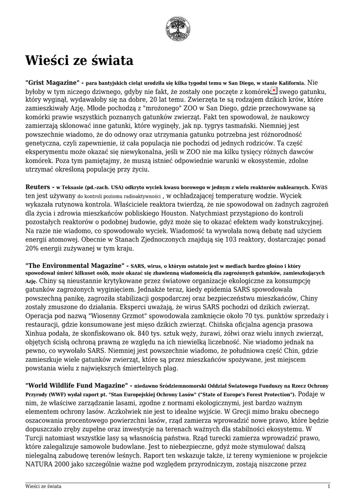 zostały zmuszone do działania. Eksperci uważają, że wirus SARS pochodzi od dzikich zwierząt.
