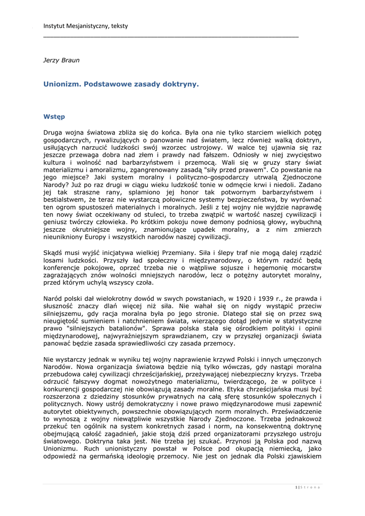 1. ZASADA UNIONISTYCZNA W ORGANIZACJI ŻYCIA ZBIOROWEGO